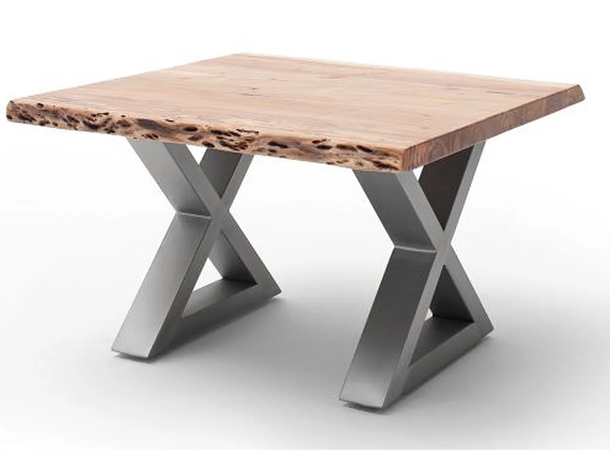 Table basse en bois d'acacia massif naturel / acier inoxydable - L.75 x H.45 x P.75 cm