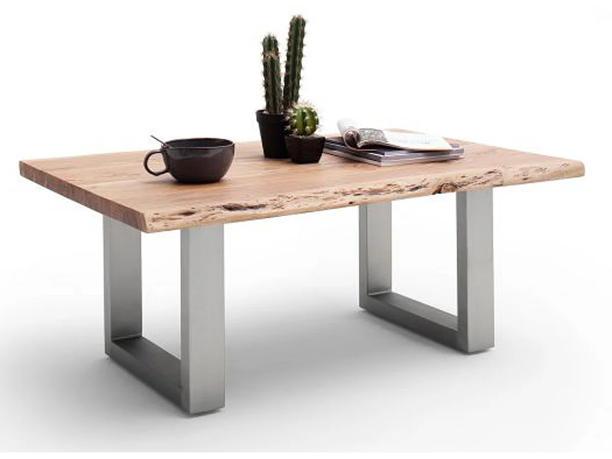 Table basse en bois d'acacia massif naturel et acier inoxydable - L.110 x H.45 x P.70 cm