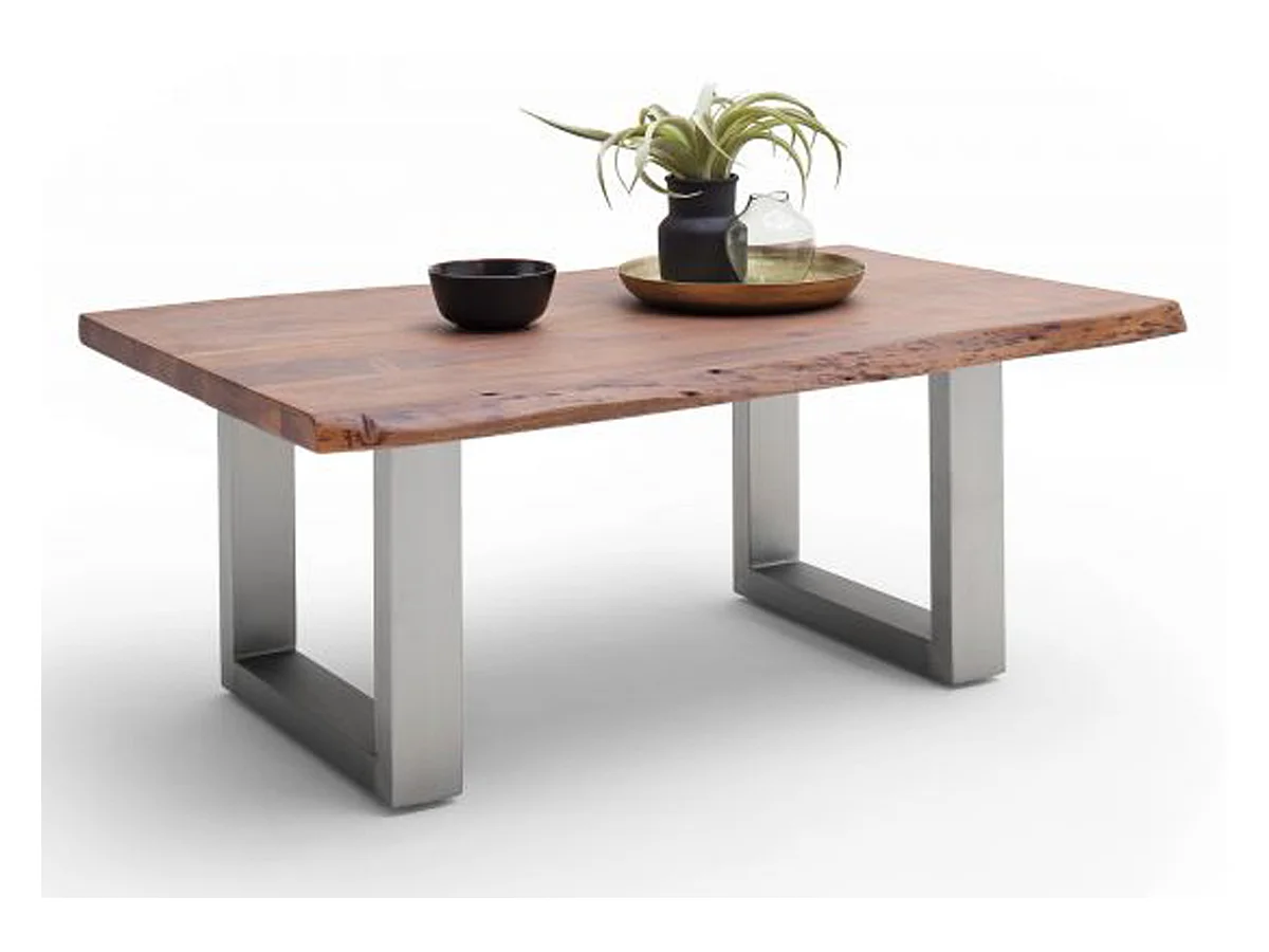 Table basse en bois d'acacia massif noyer et acier inoxydable - L.110 x H.45 x P.70 cm