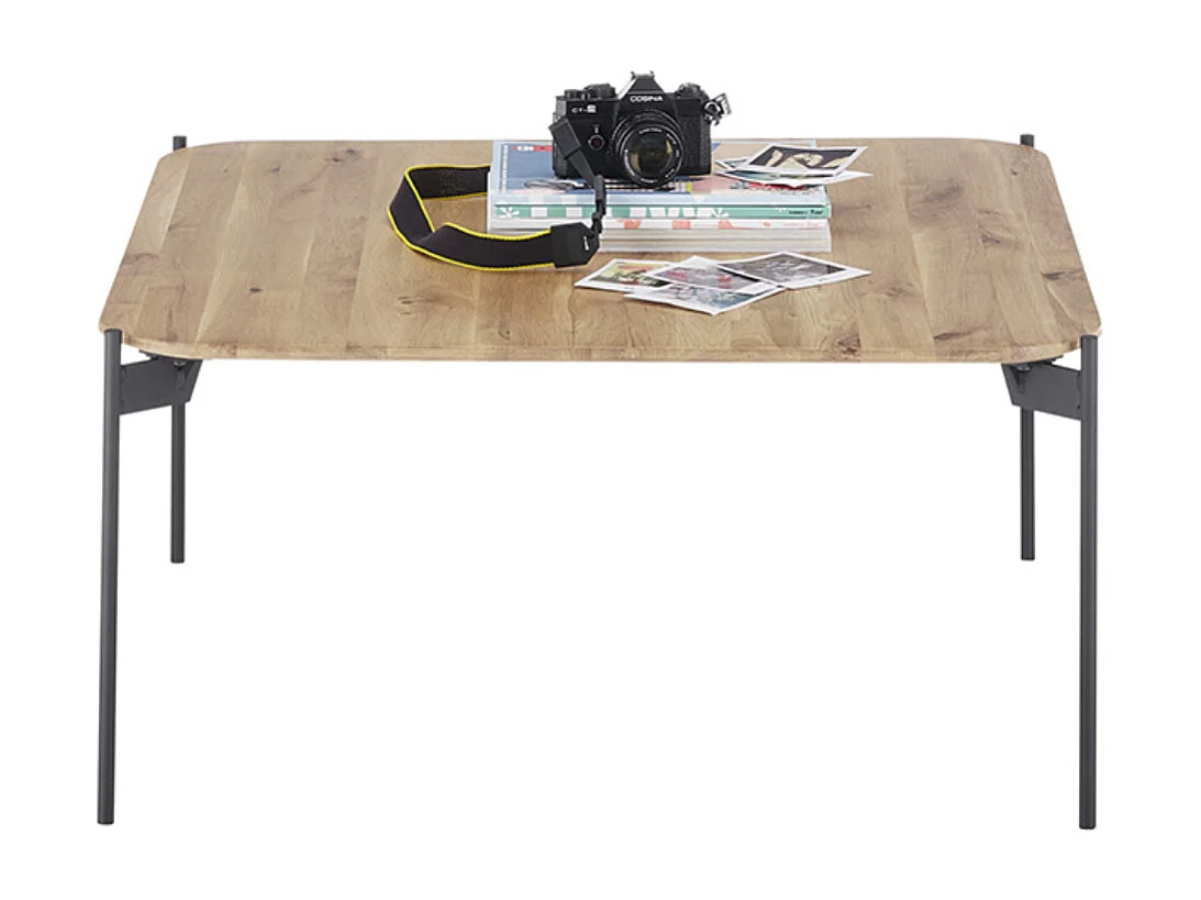 Table basse en bois de chêne massif huilé, pieds en métal noir - Longueur 60 x Hauteur 38 x Profondeur 60 cm