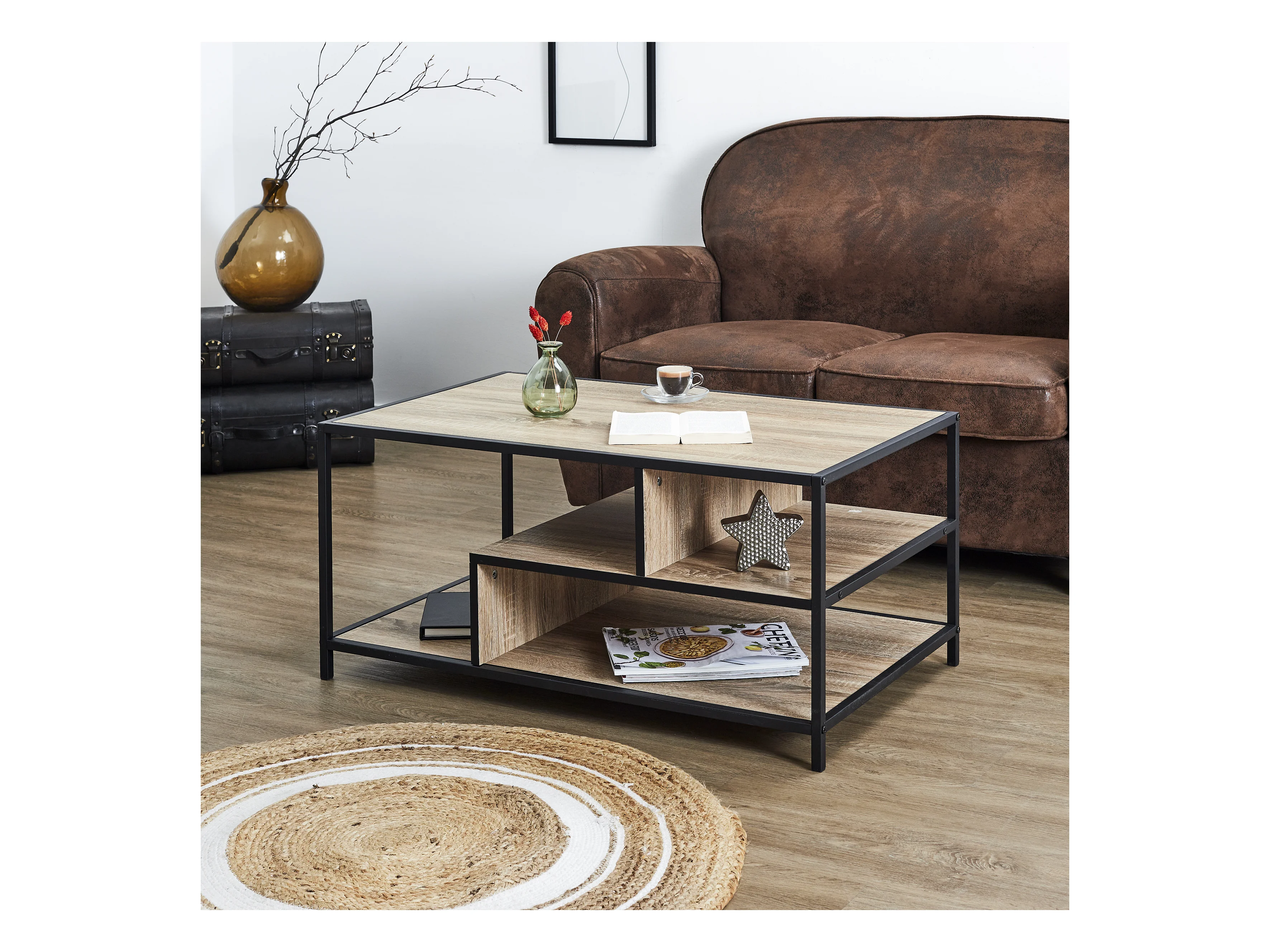 Table basse Canopus, Table basse, Porte-revues pour canapé, Etagère de salon, 90x60h35 cm, Noyer
