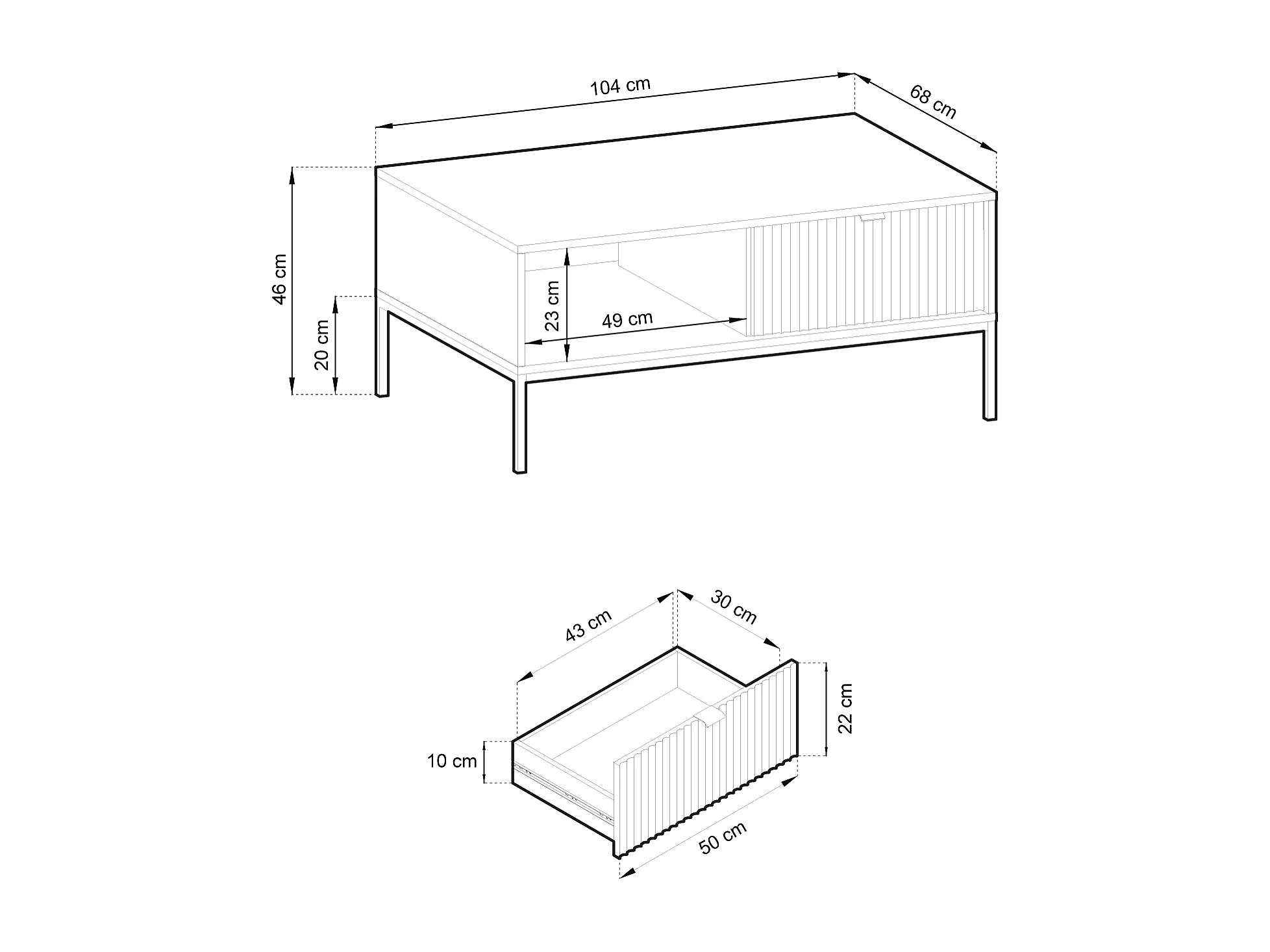 Table basse en bois lamellé-collé avec pieds en métal doré 104x68 cm