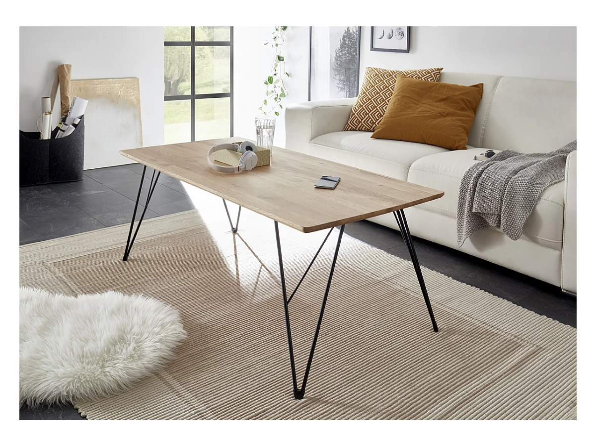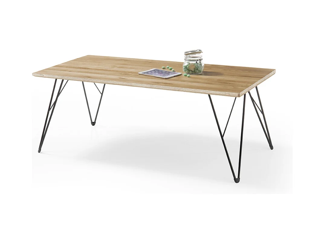 Table basse en chêne massif avec piètement en métal noir - L120 x H46 x P60 cm