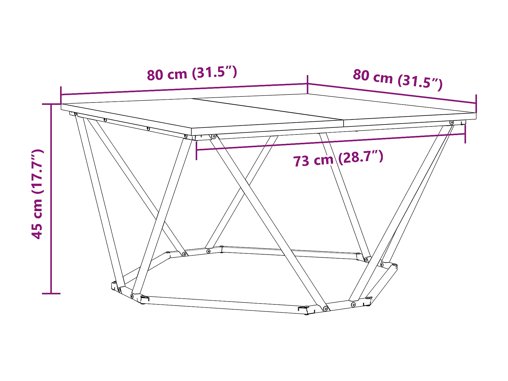 Table basse chêne sonoma 80x80x45 cm bois d'ingénierie et métal