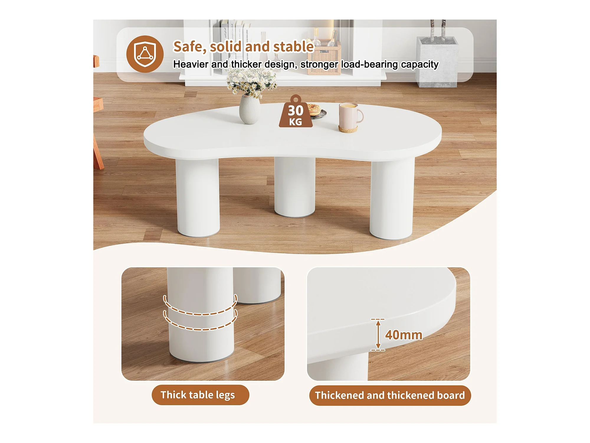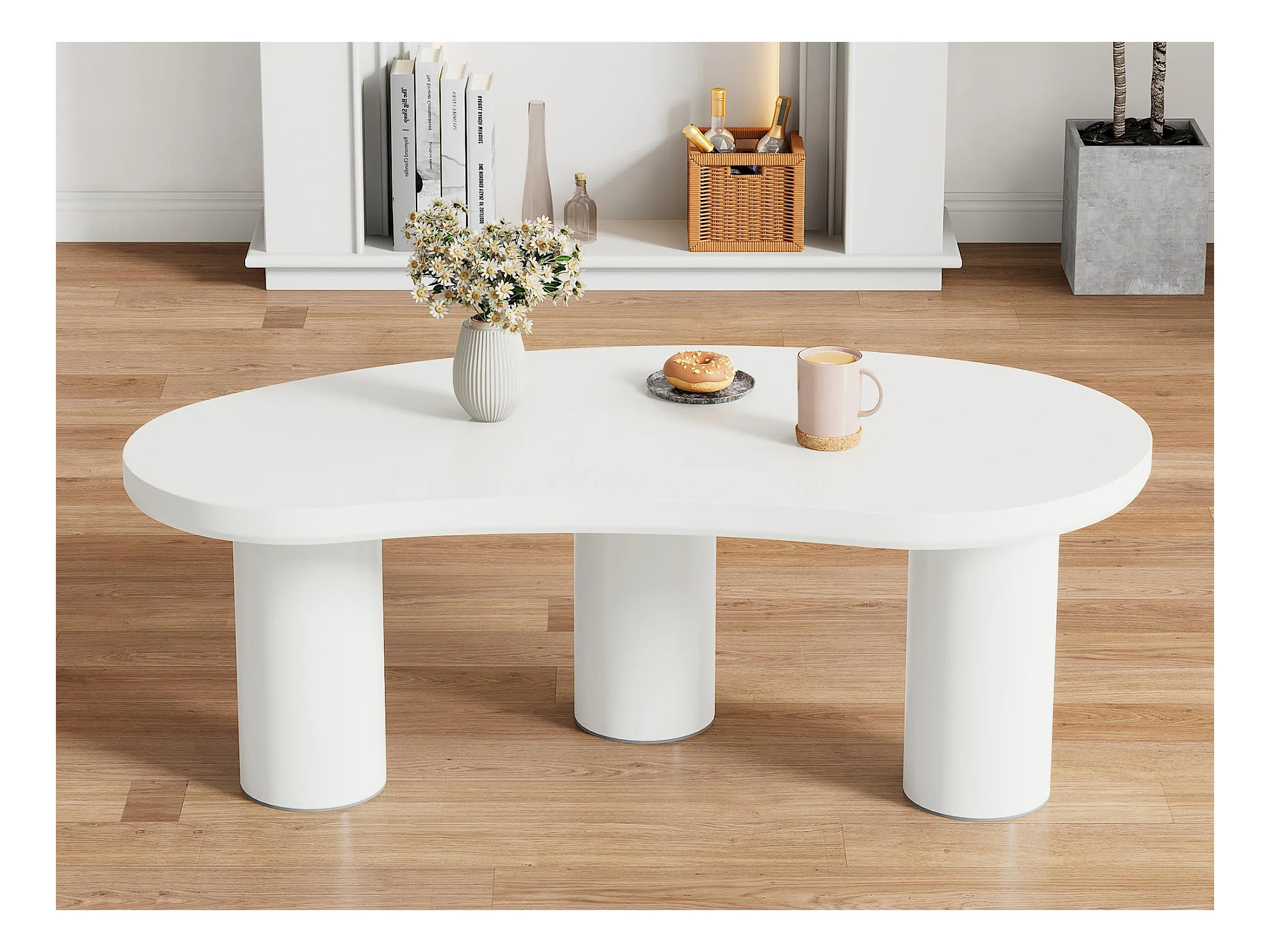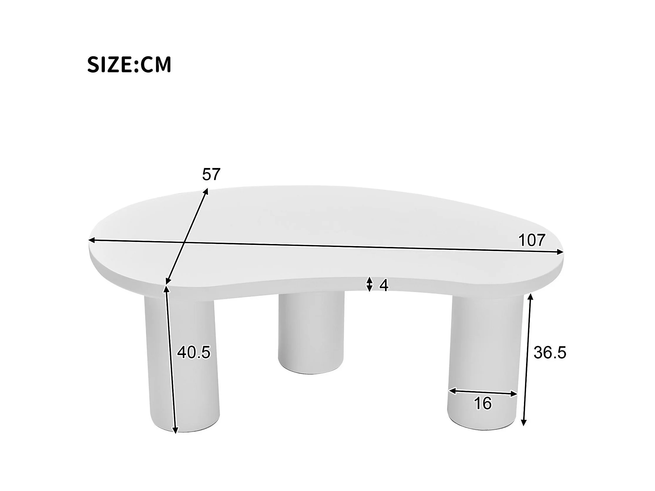 Table basse en forme de nuage irrégulier - 107 x 66 x 40.5 cm - Plateau en MDF et pieds en PVC - blanc