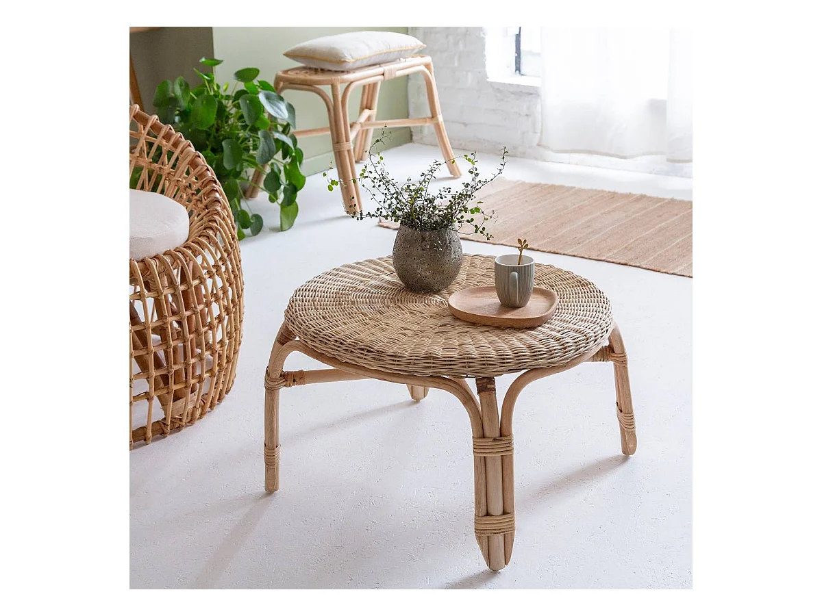 Table basse en rotin ronde Nohan