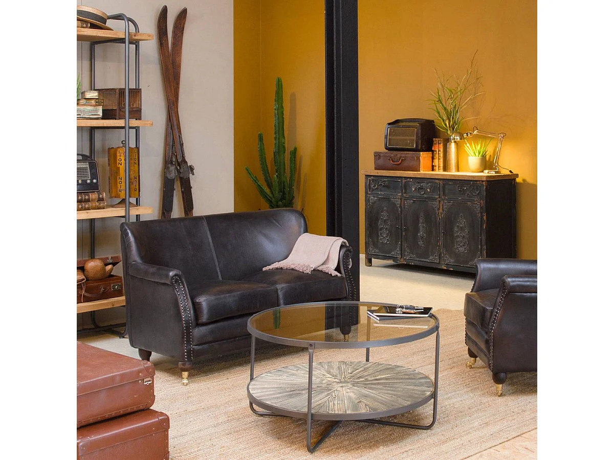Table basse ronde LORIE métal noir plateau en verre D90 cm
