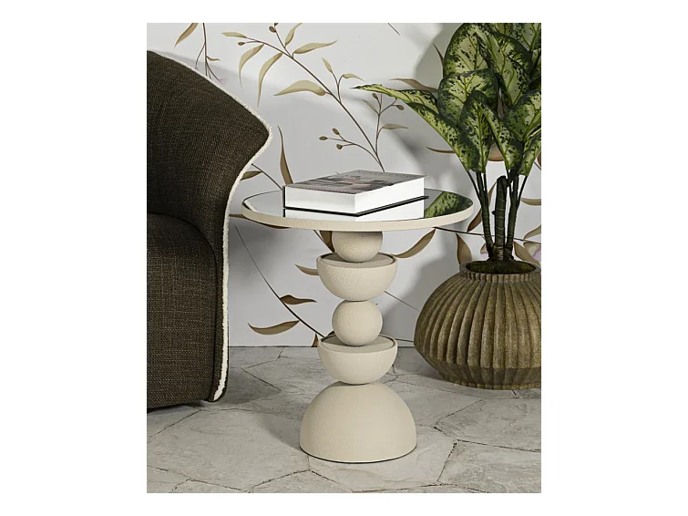 Table basse et miroir en métal crème cm ø 45x49,5