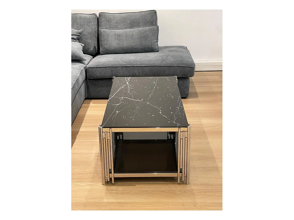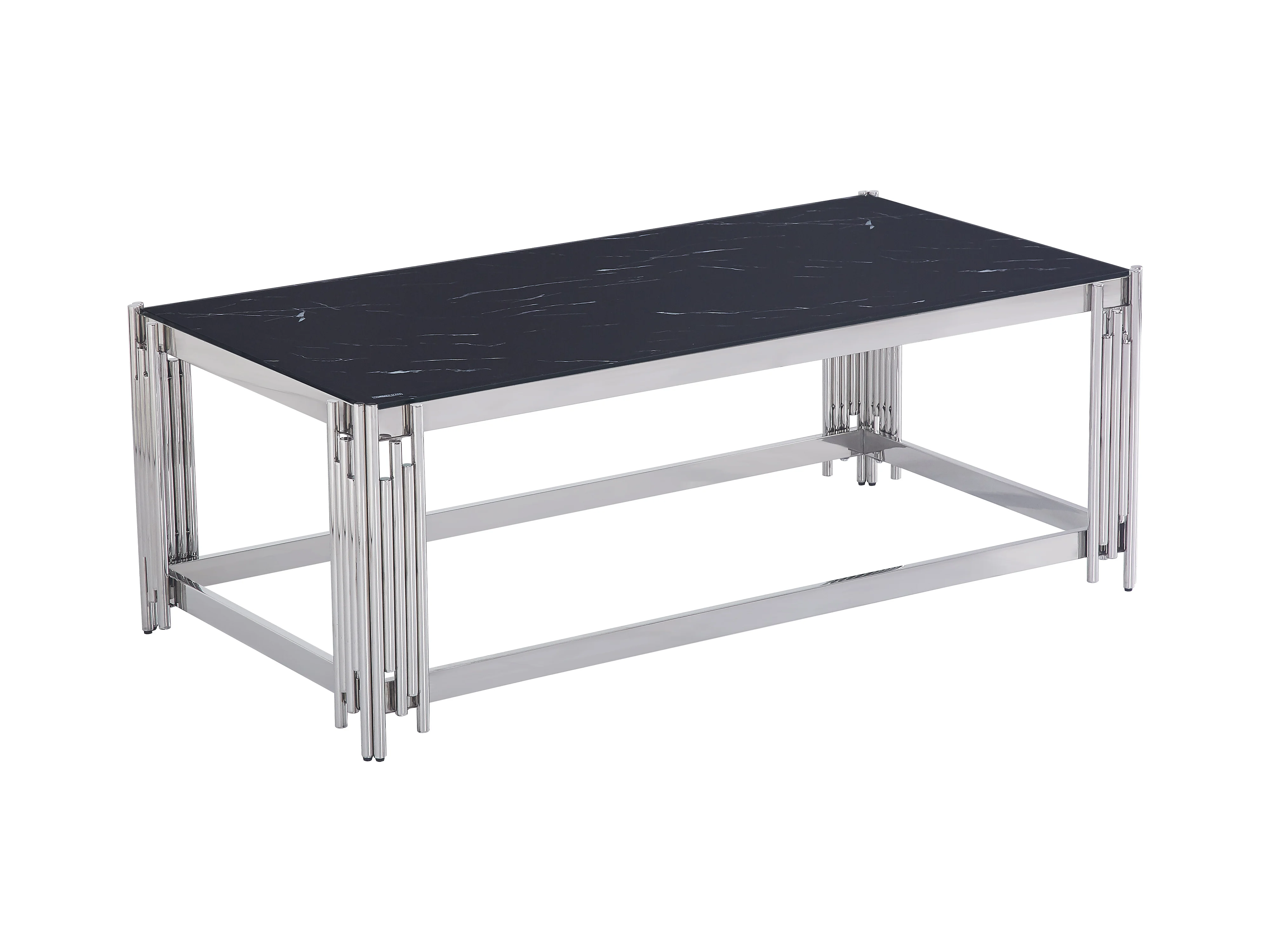 Table Basse FLUTE Chrome et plateau en verre 120x60x45 cm