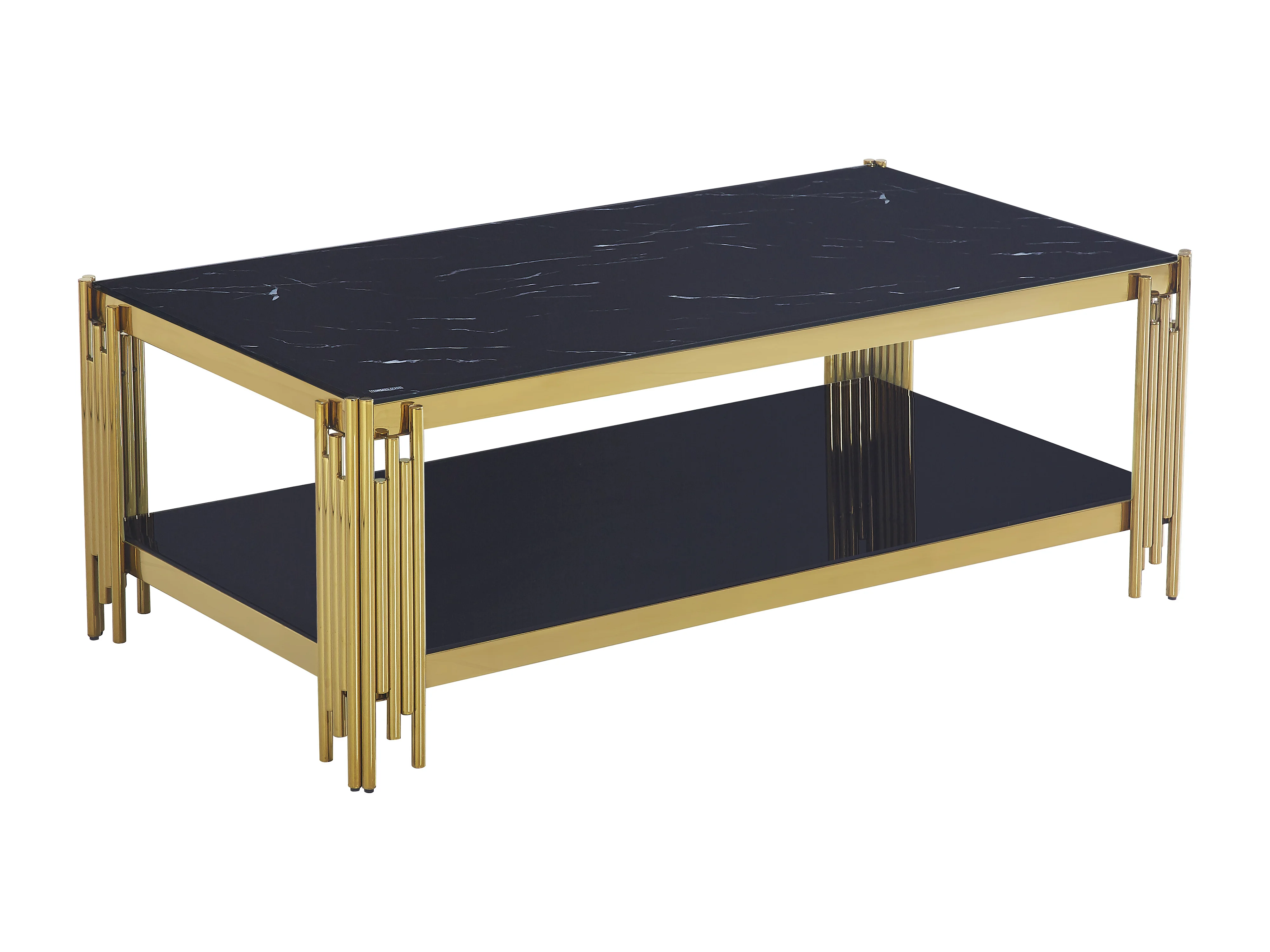 Table Basse FLUTE Gold et plateau en verre 120x60x45 cm