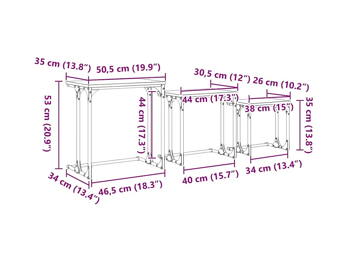 Tables gigognes 3 pièces Chêne sonoma Aggloméré