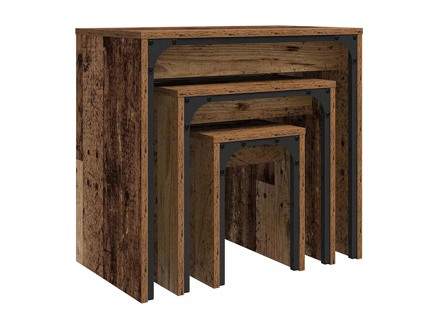 Tables basses gigognes 3 pièces vieux bois bois d'ingénierie