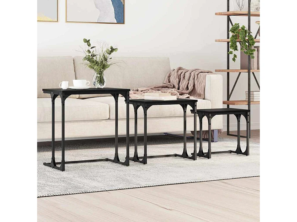 Tables gigognes 3 pièces noir bois d'ingénierie