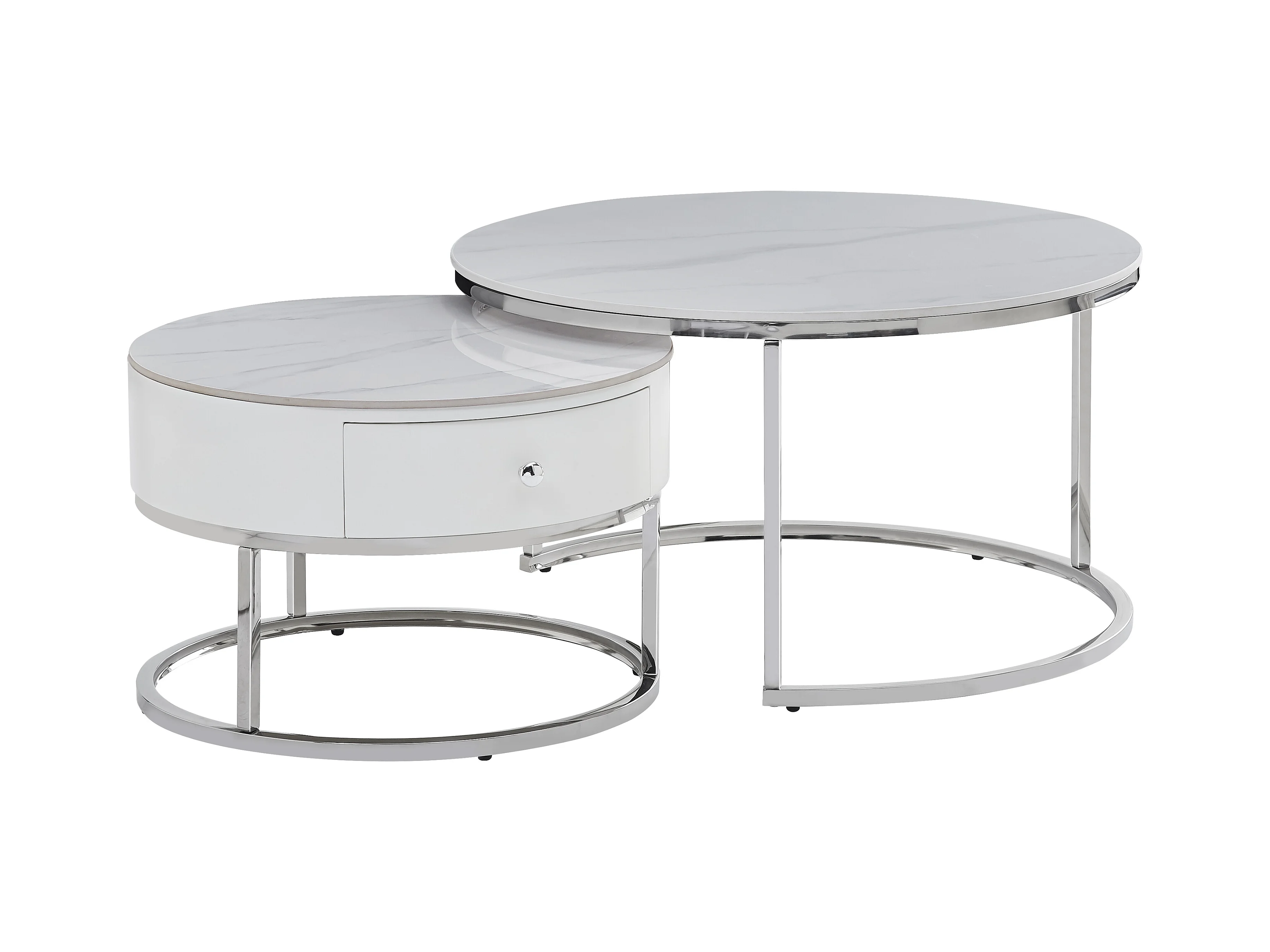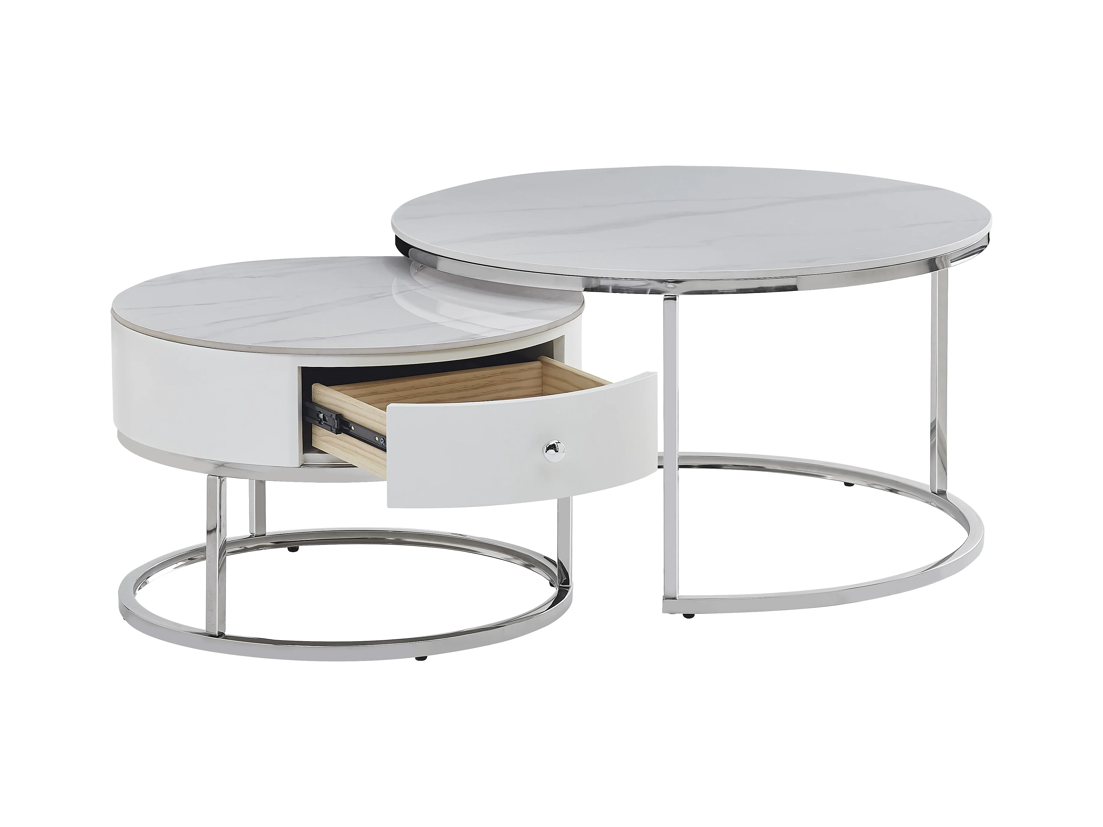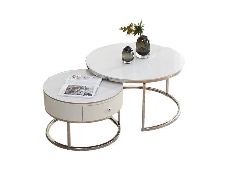 Table basse gigogne avec tiroir NOVELA Plateau céramique Marbre blanc