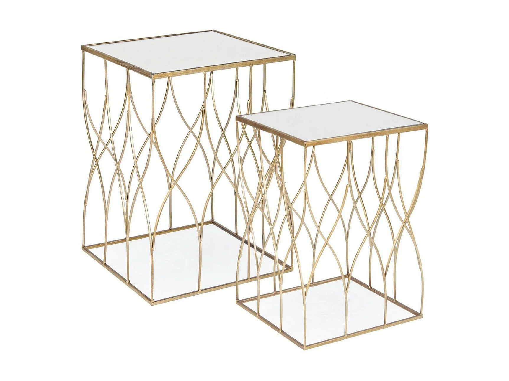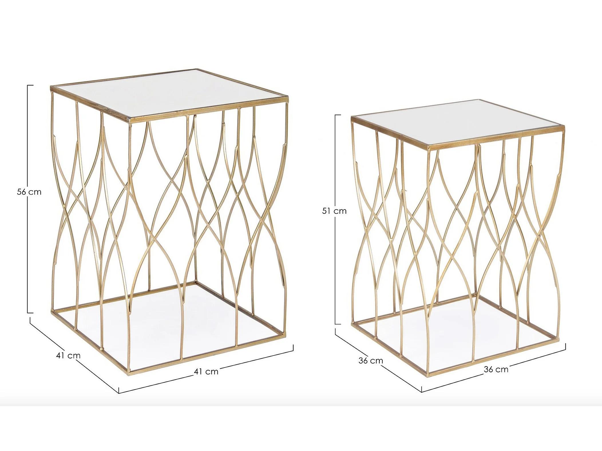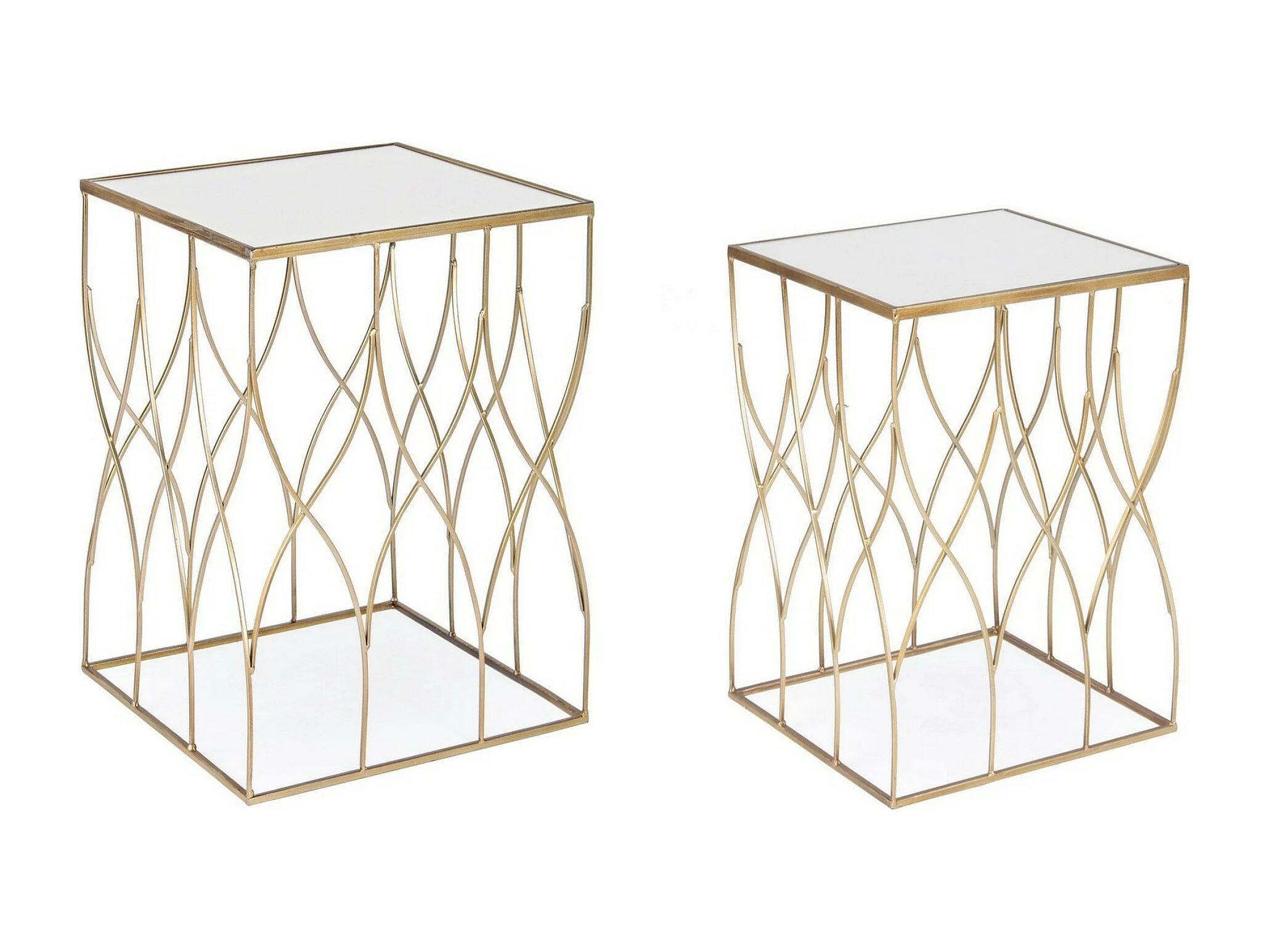 Table basse gigogne carrée en acier doré et miroir Louanor - Lot de 2
