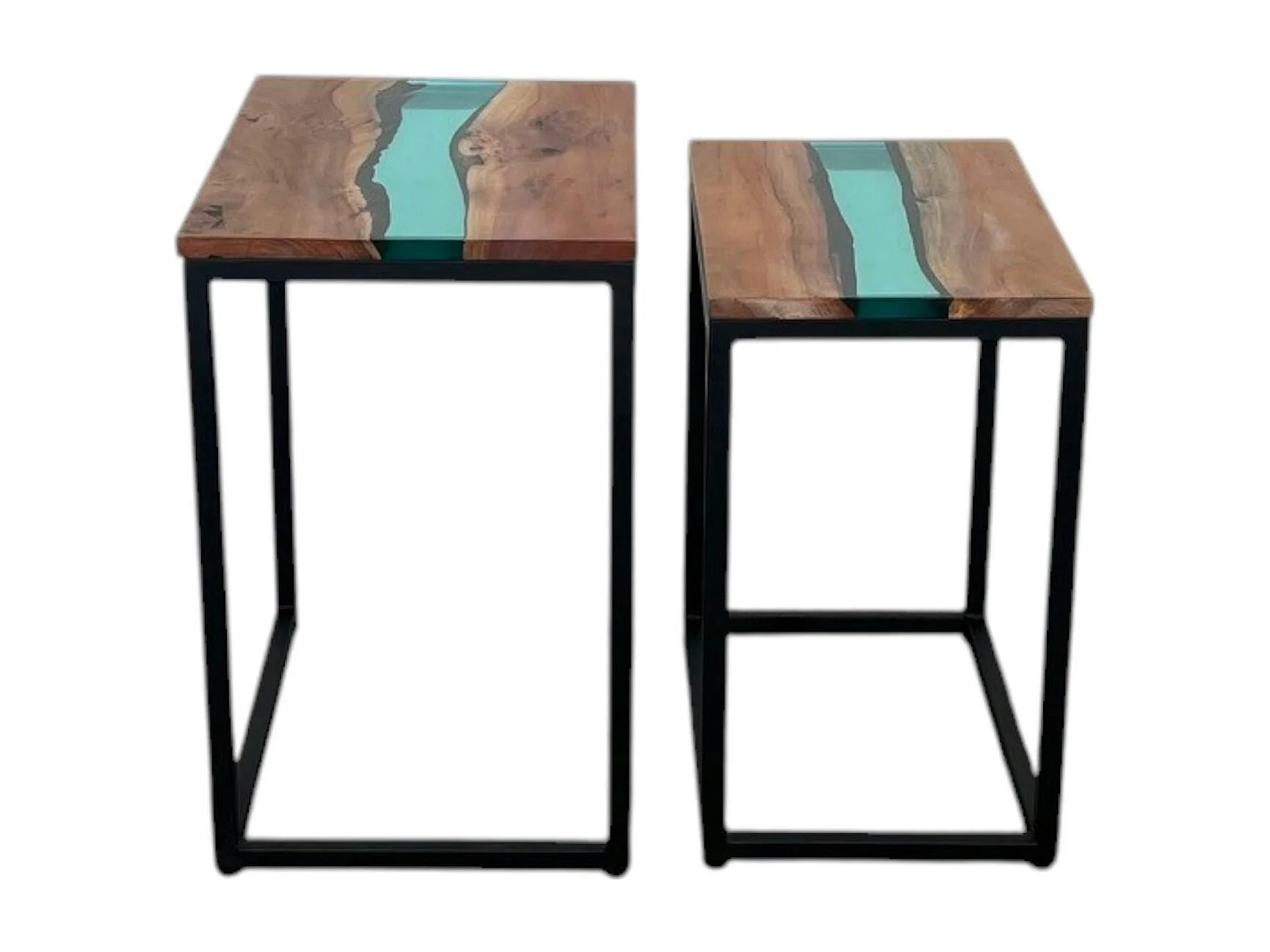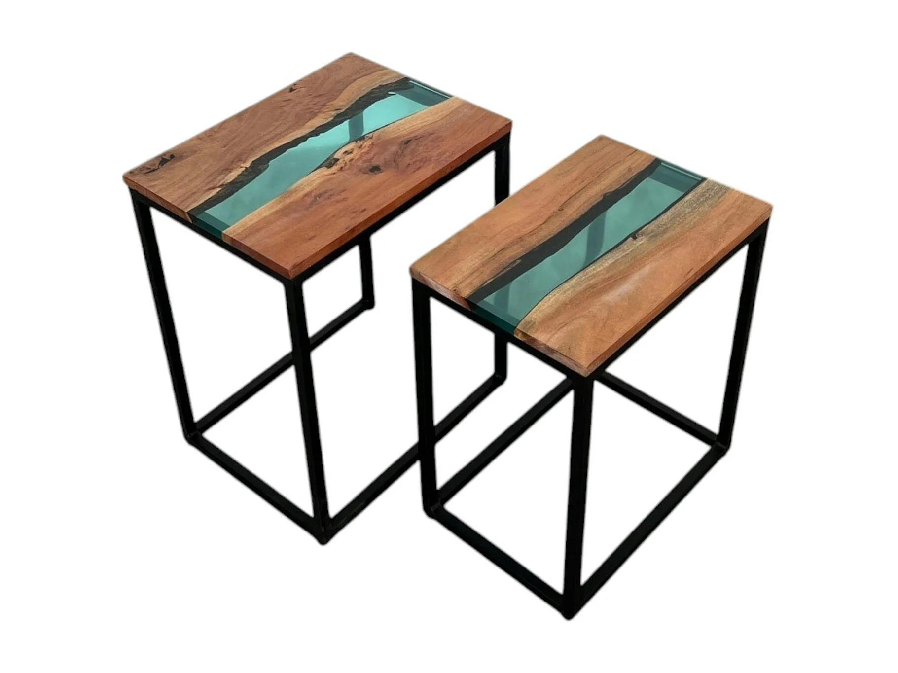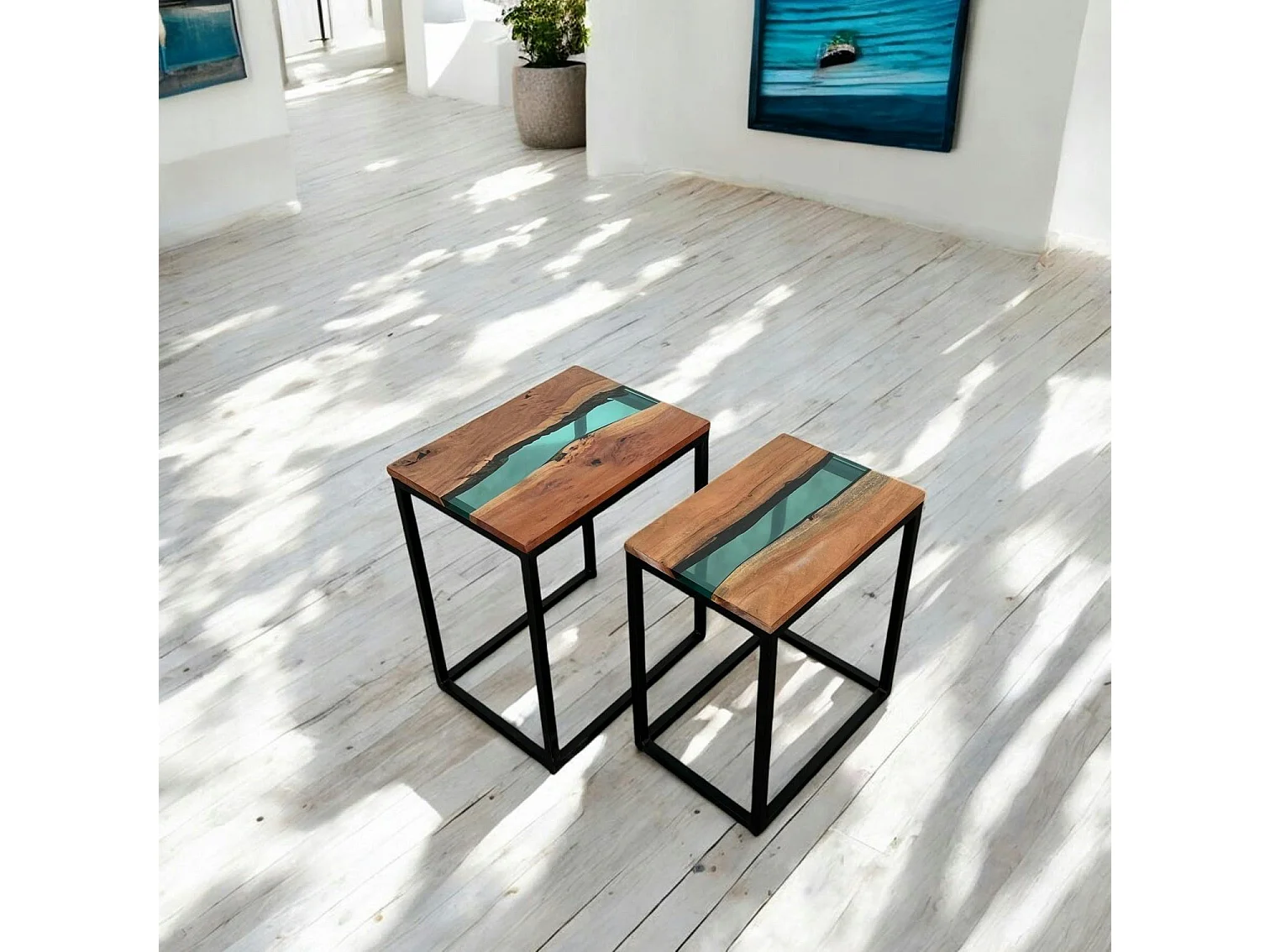 Table basse gigogne époxy lagon et bois d'acacia (lot de 2) BORA