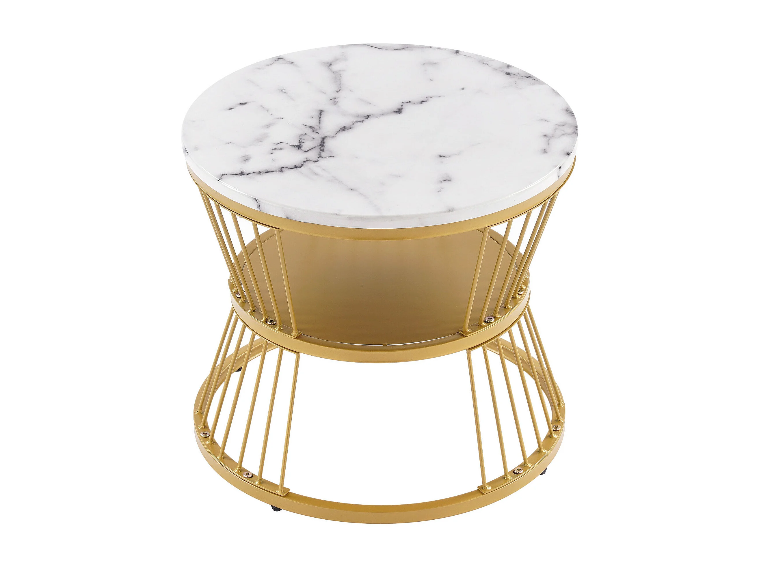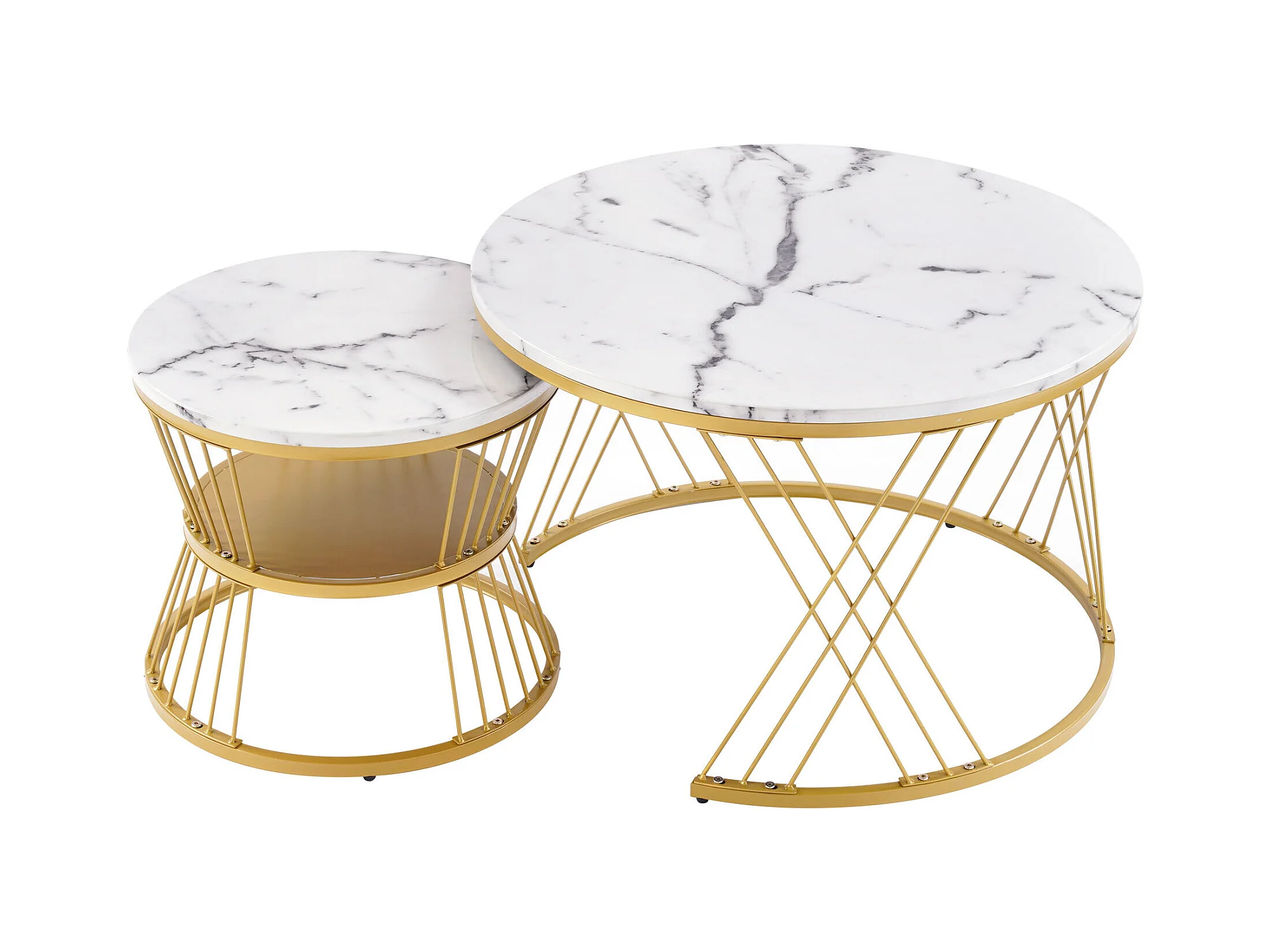 Tables basses gigognes 2 en 1 rond marbre placage - blanc et doré