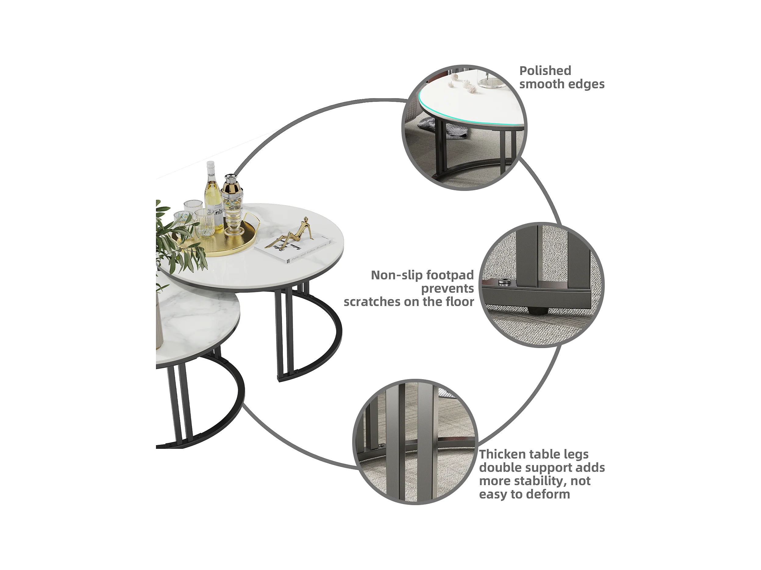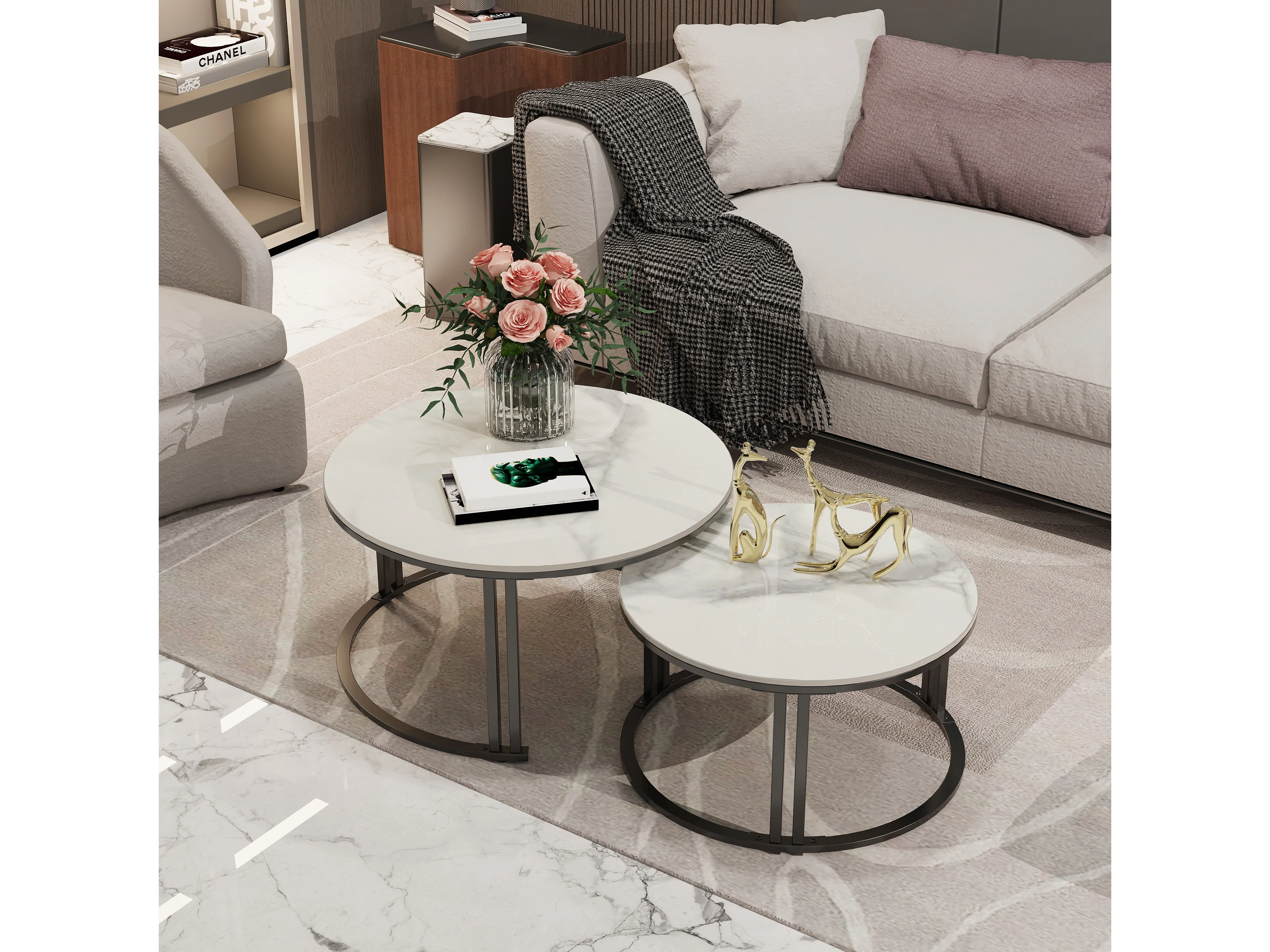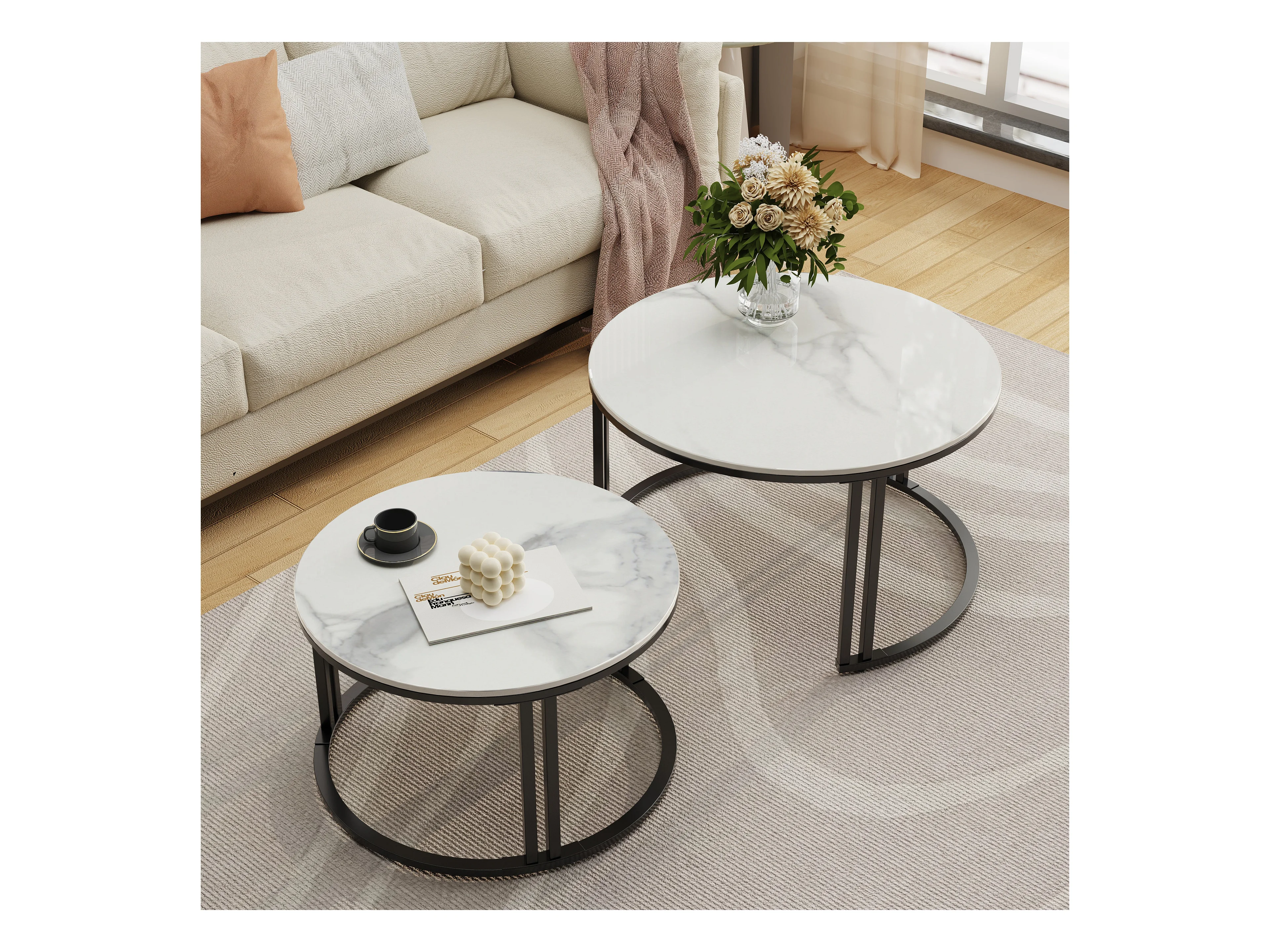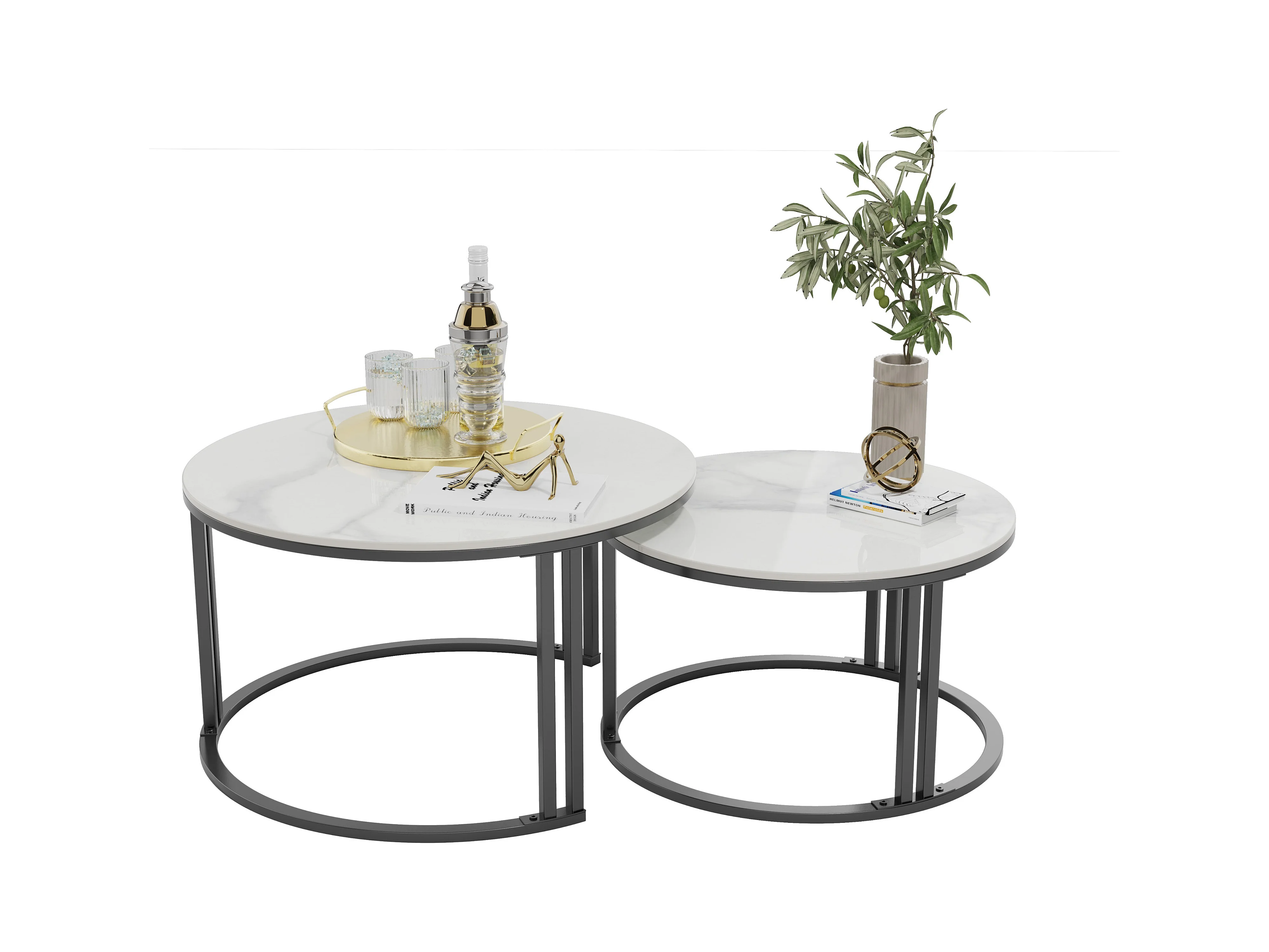 Table basse gigogne ronde lot de 2 pour salon bureau 70x70x40cm / 57x57x35cm