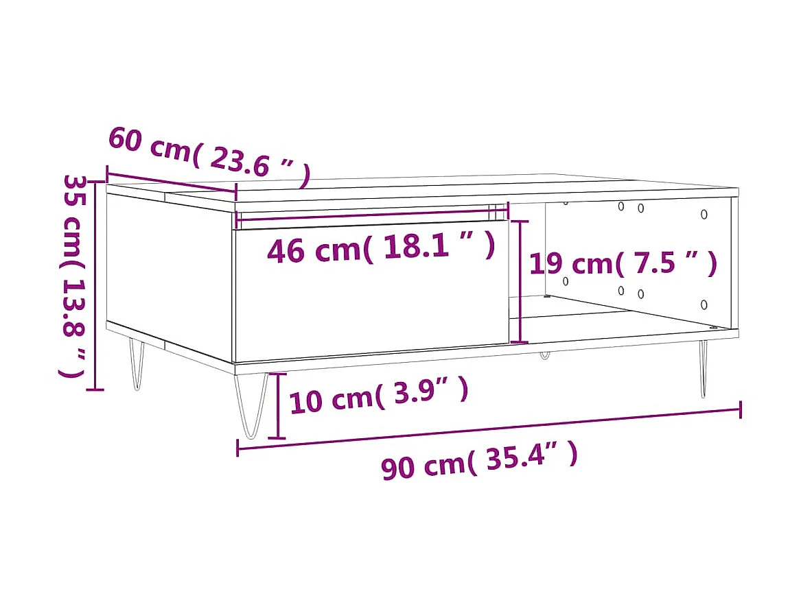 Table basse sonoma gris 90x60x35 cm bois d'ingénierie