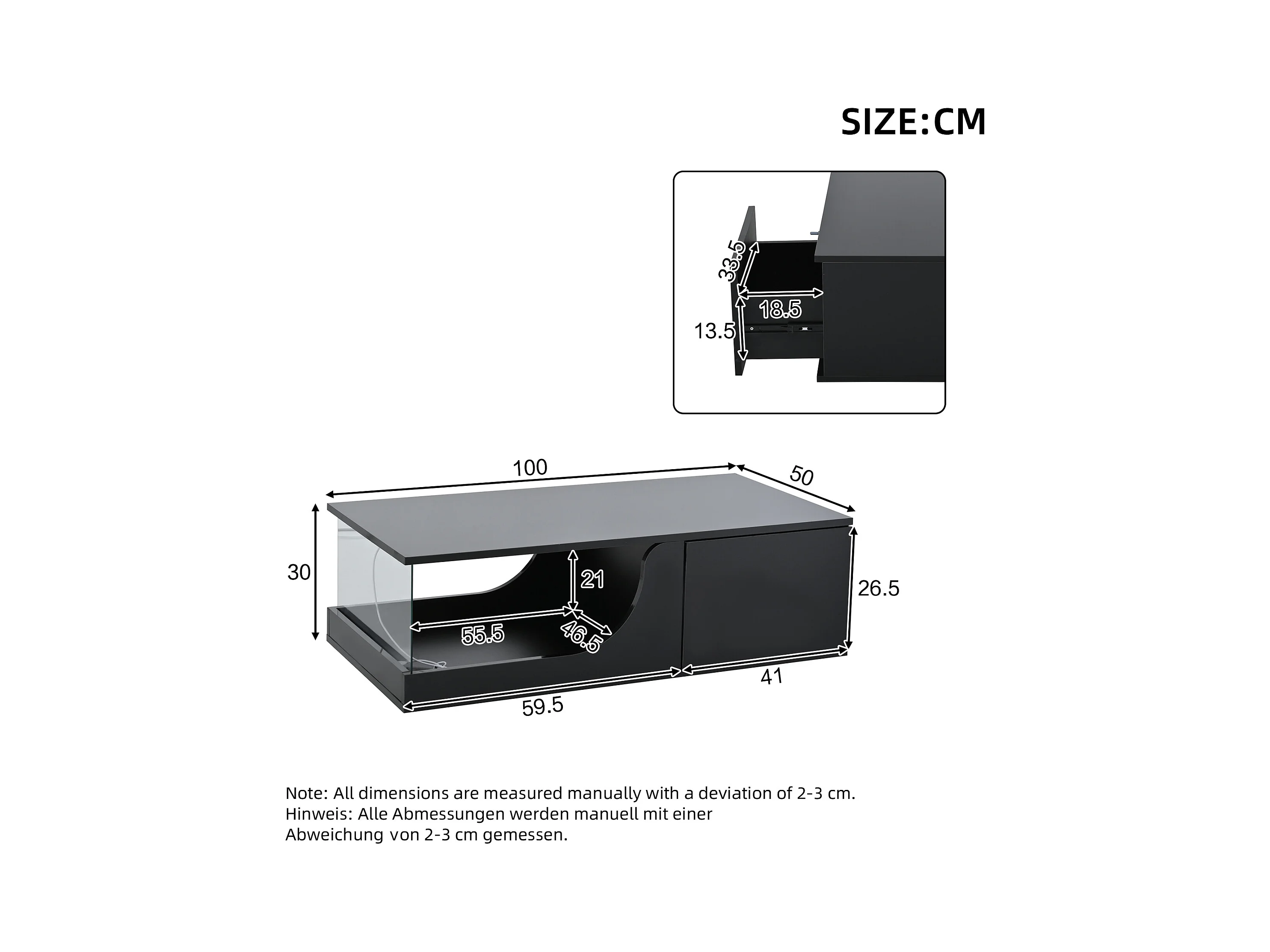 Table basse avec LED - avec 1 tiroir et 1 compartiment - Noir