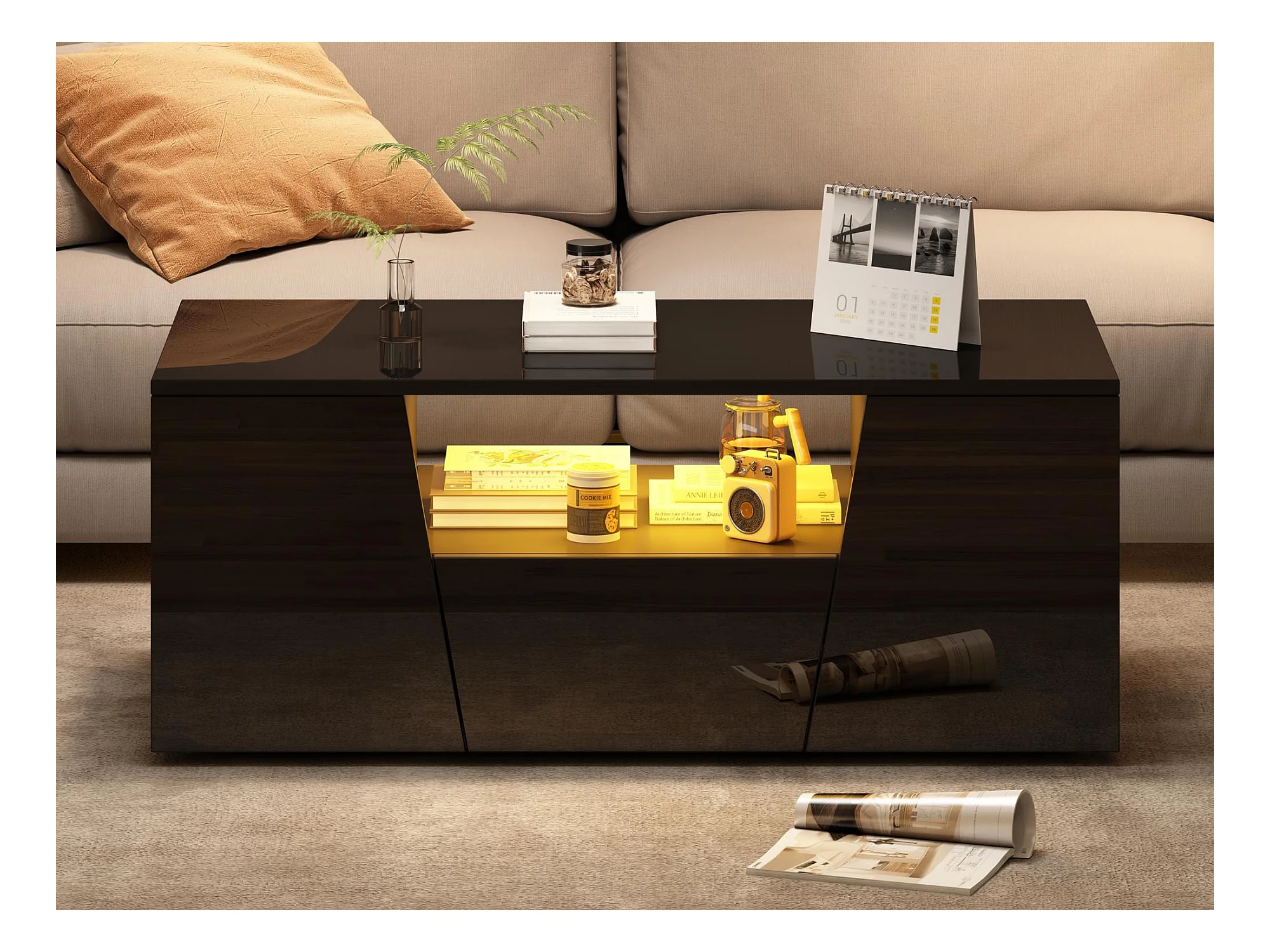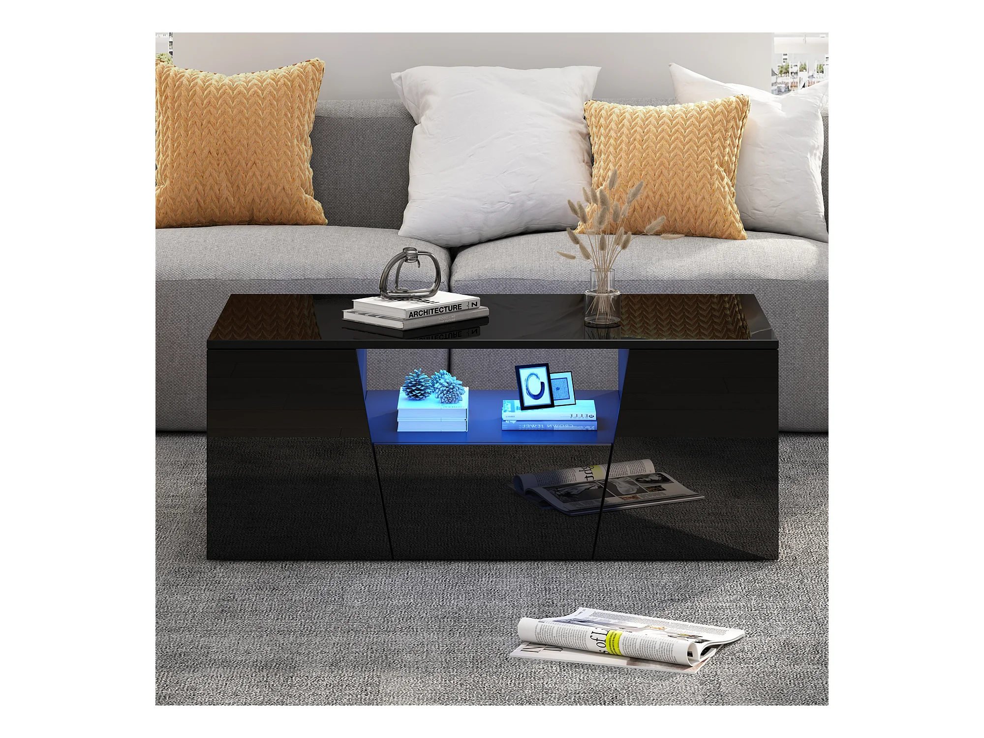 Table basse haute brillance 100x50x40 cm - avec éclairage LED - 2 portes et 1 tiroir - noir