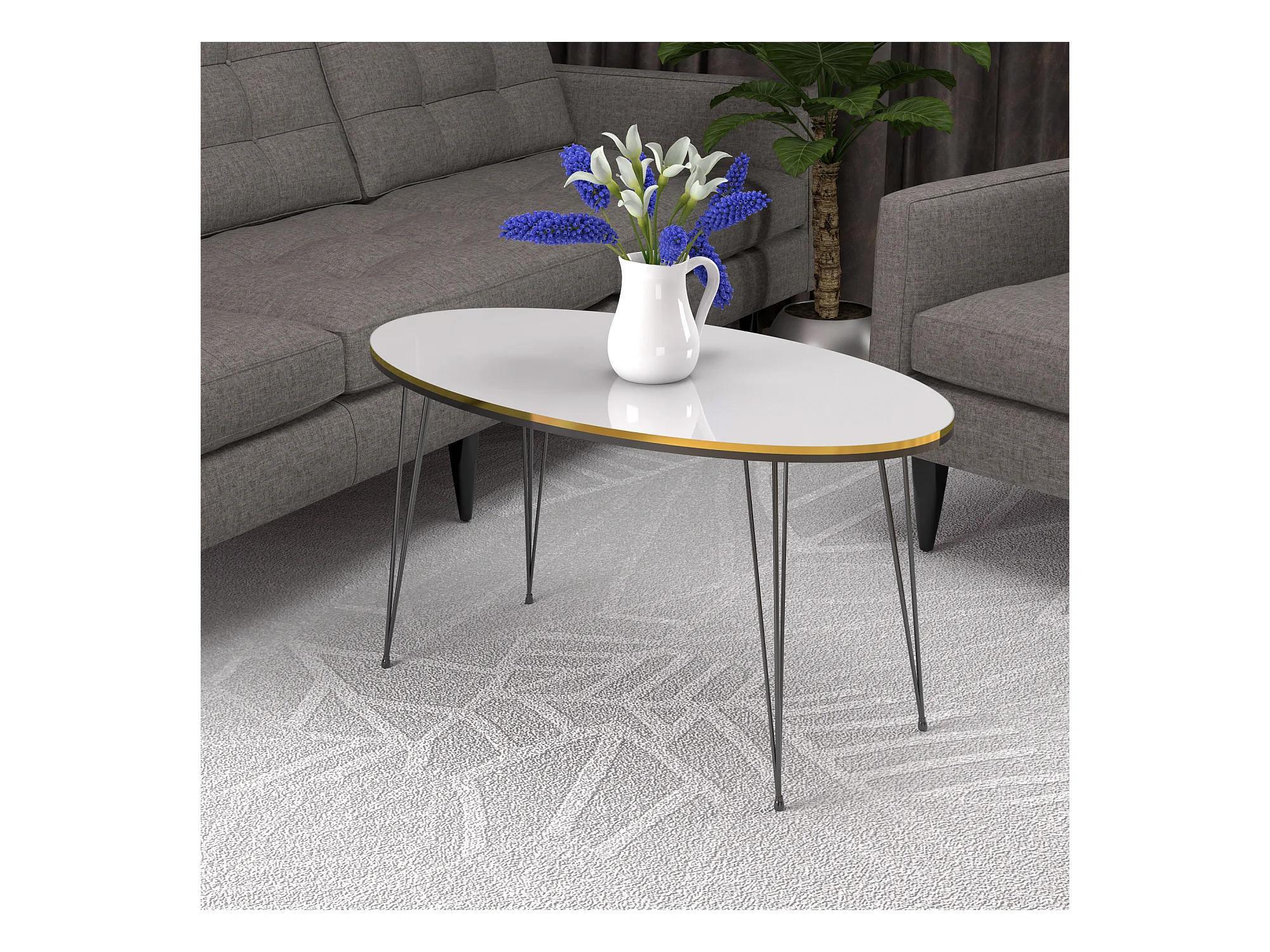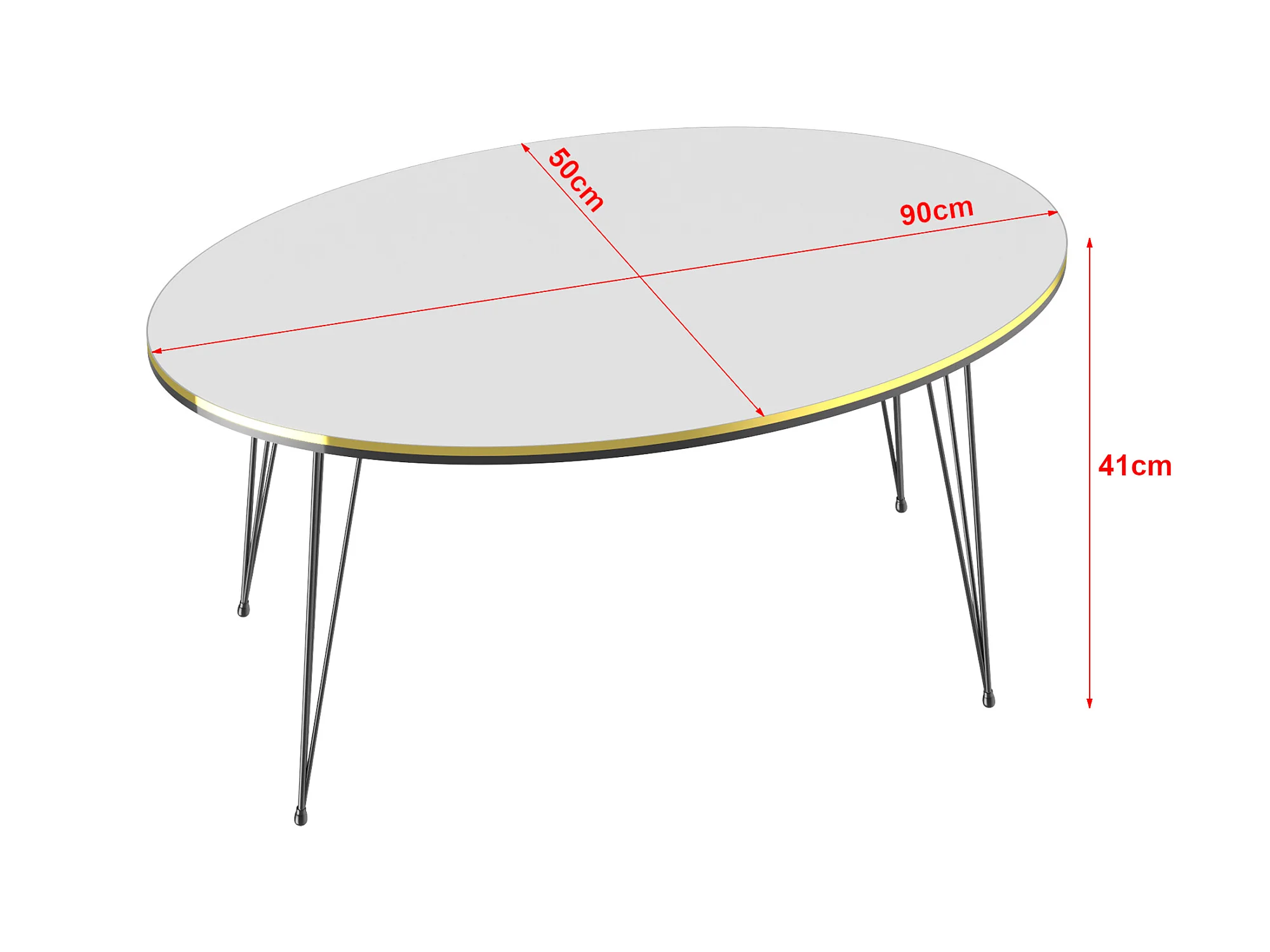 Table basse Hirtshals ovale 41 x 90 x 50 cm blanc or noir [en.casa]