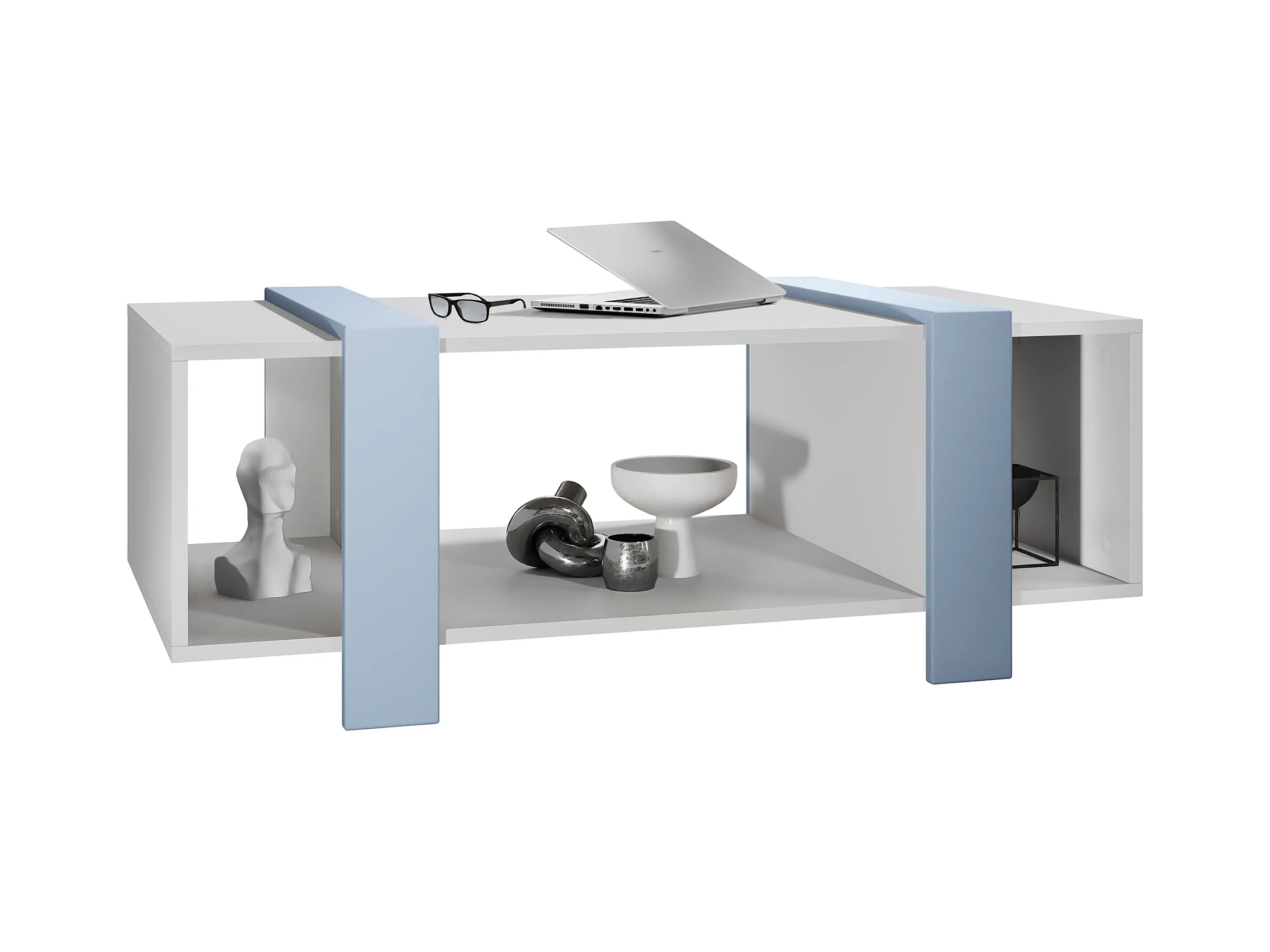 Table basse Ida 110,5 x 42 x 56,5 cm Table de salon à trois compartiments, caisson en blanc mat, façades en Denim mat | Grand choix de couleurs