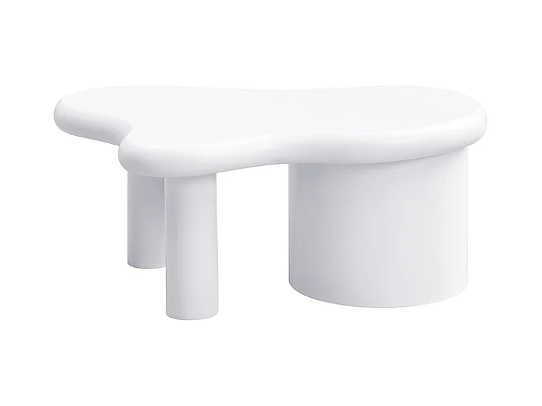 Table basse créative en forme de nuage, MDF avec protection en feutre, finition laquée, blanche (97 x 67 x 32 cm)