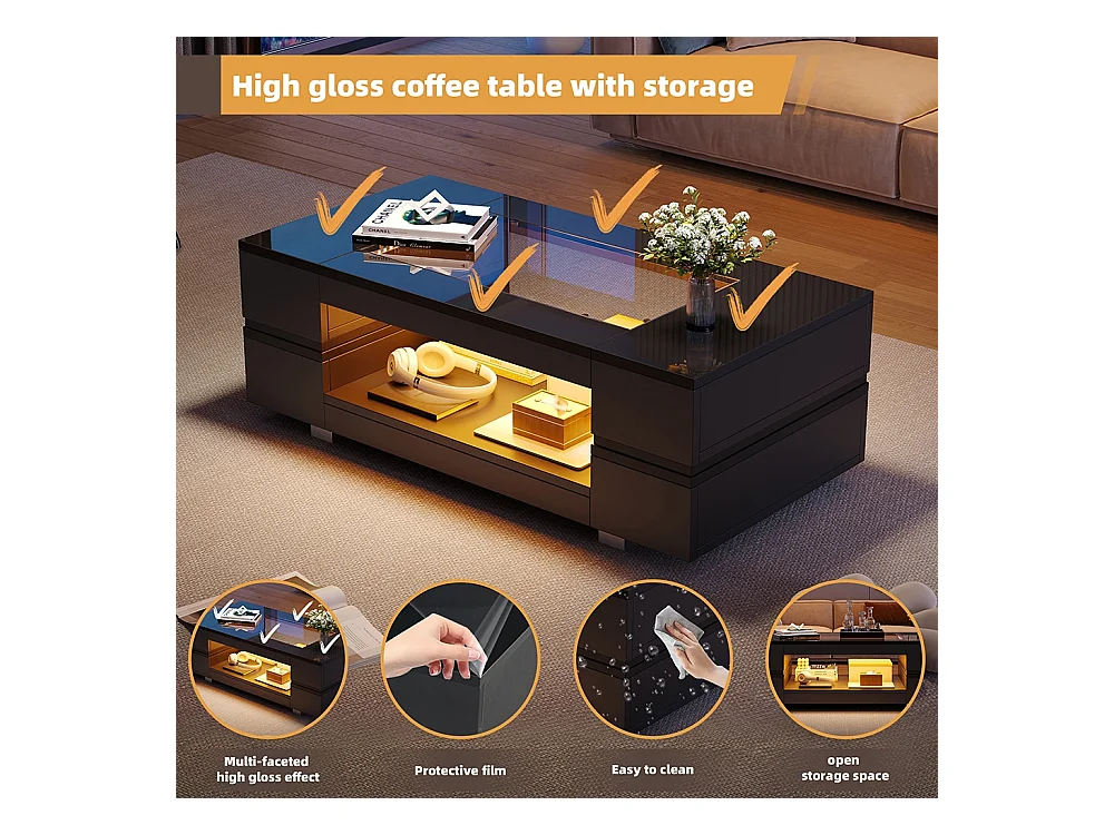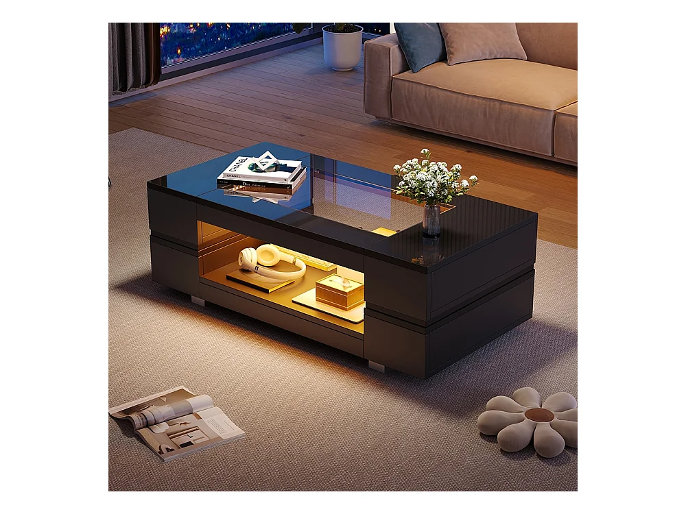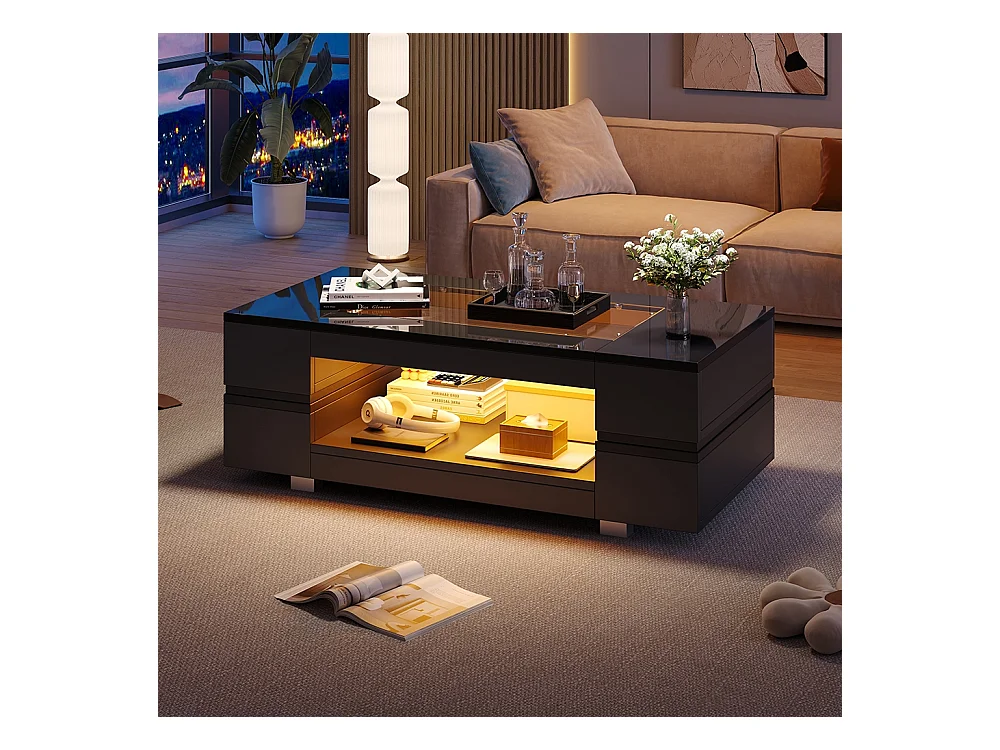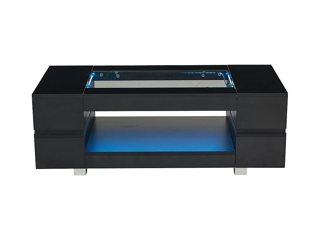Table basse LED avec commande Bluetooth par application table double couche design creux brillant pour fêtes bureaux et salons noir