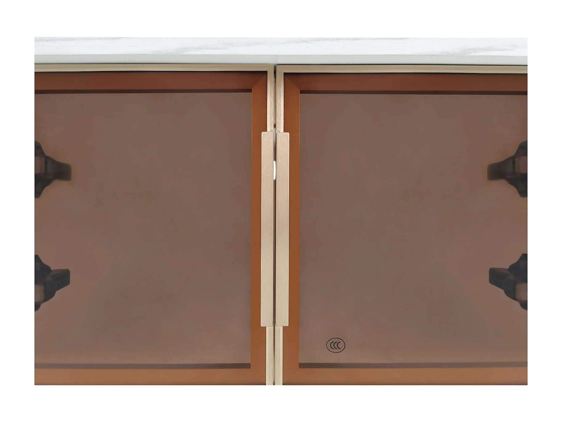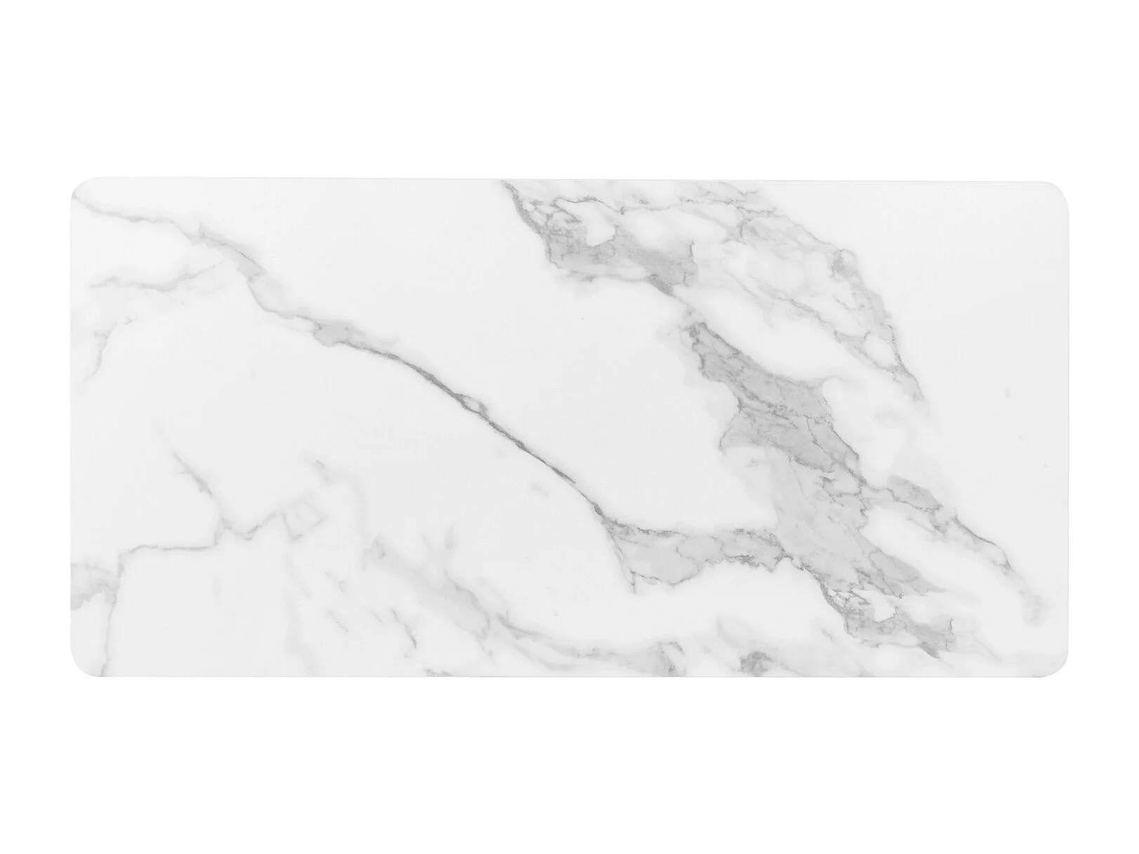 Table basse marbrée blanche - Buffet avec deux tiroirs et un compartiment de rangement avec LED