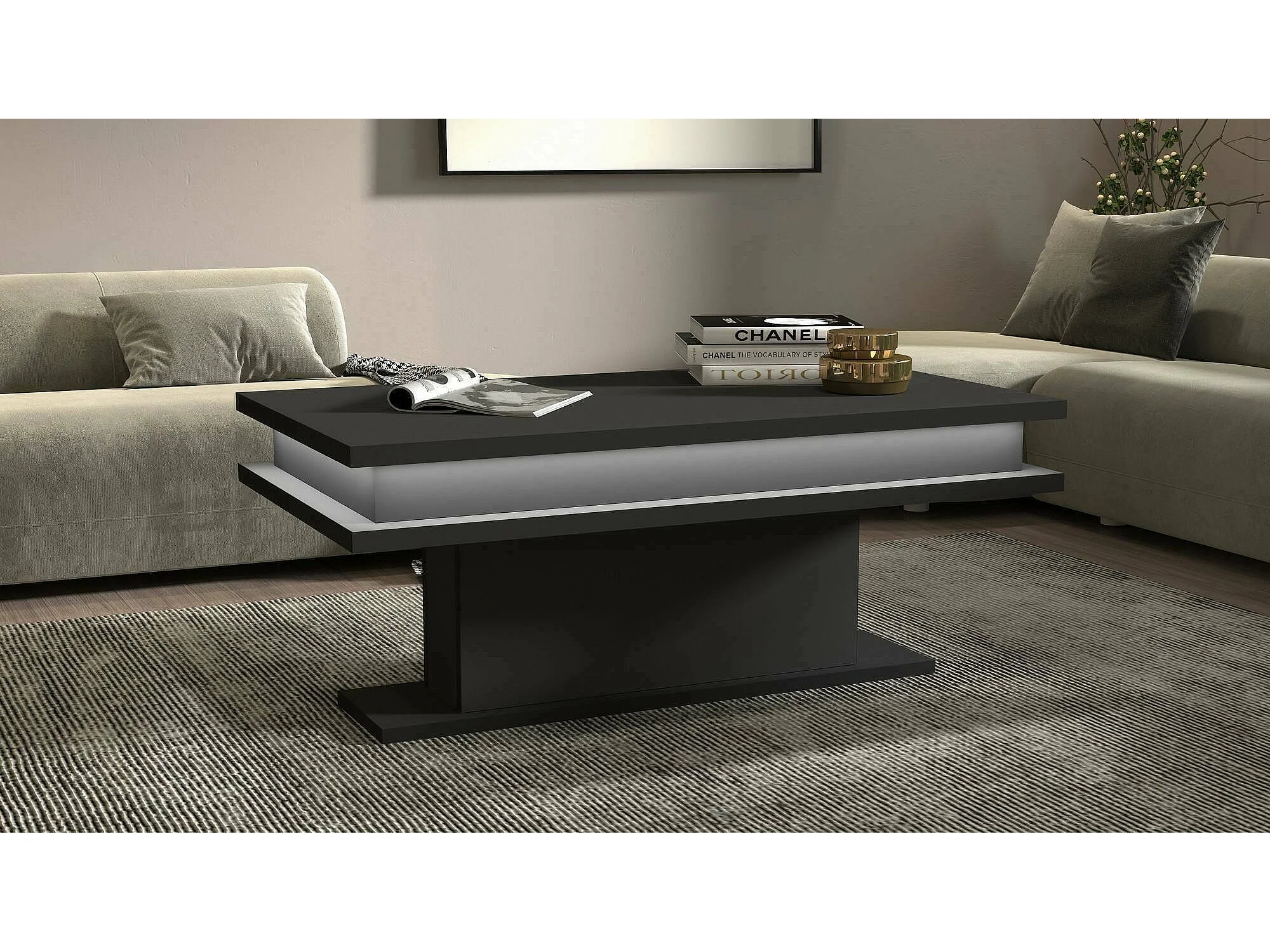 Table basse Léon, Table basse de salon, Meuble bas de rangement, Table basse, 100x55h42 cm, Anthracite avec lumière LED