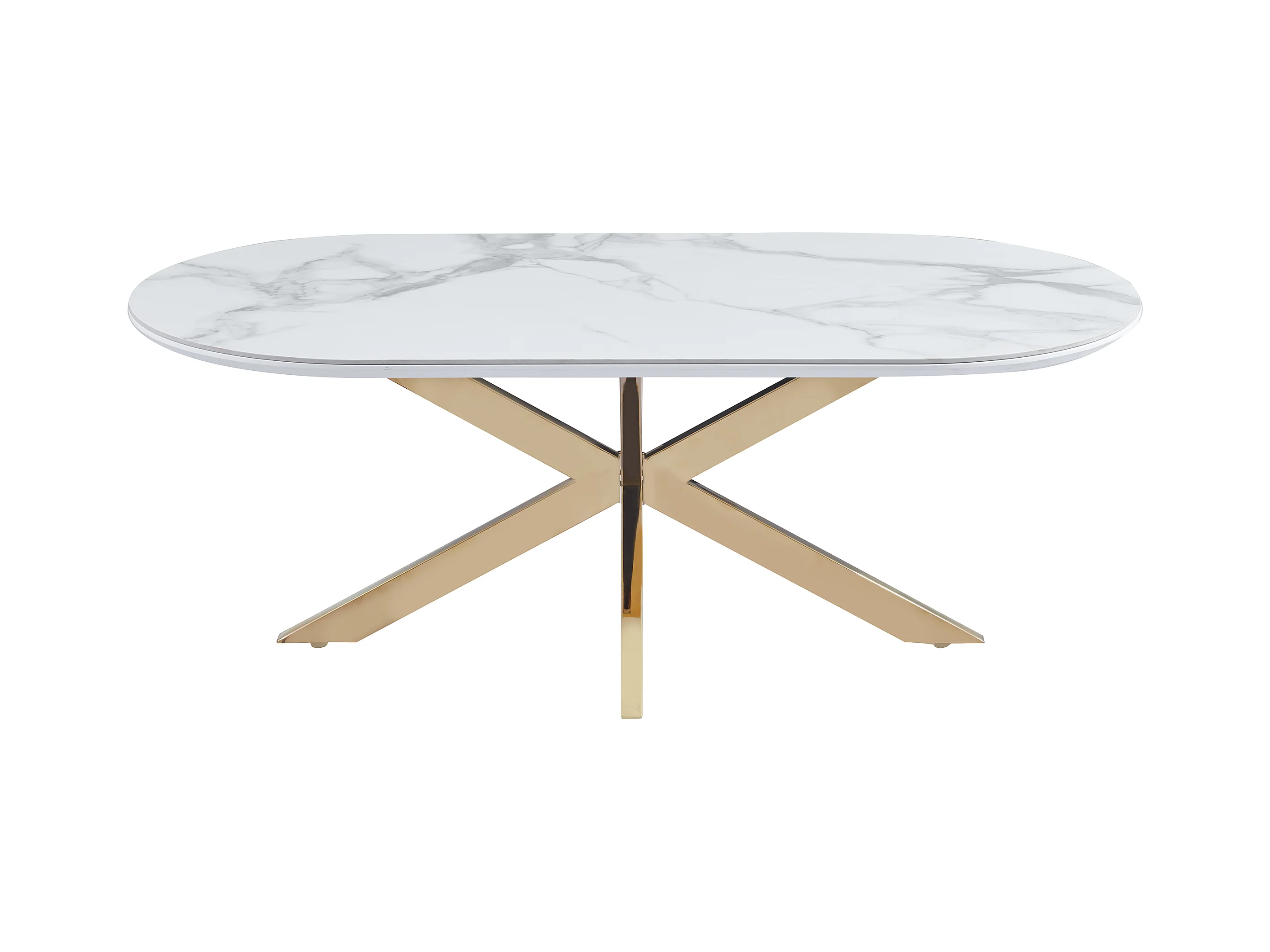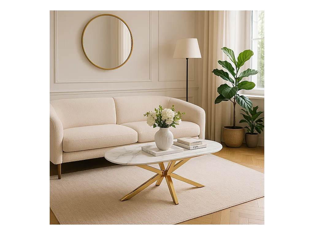 Table basse MANON Gold & Céramique Marbre Blanc 120x60 cm