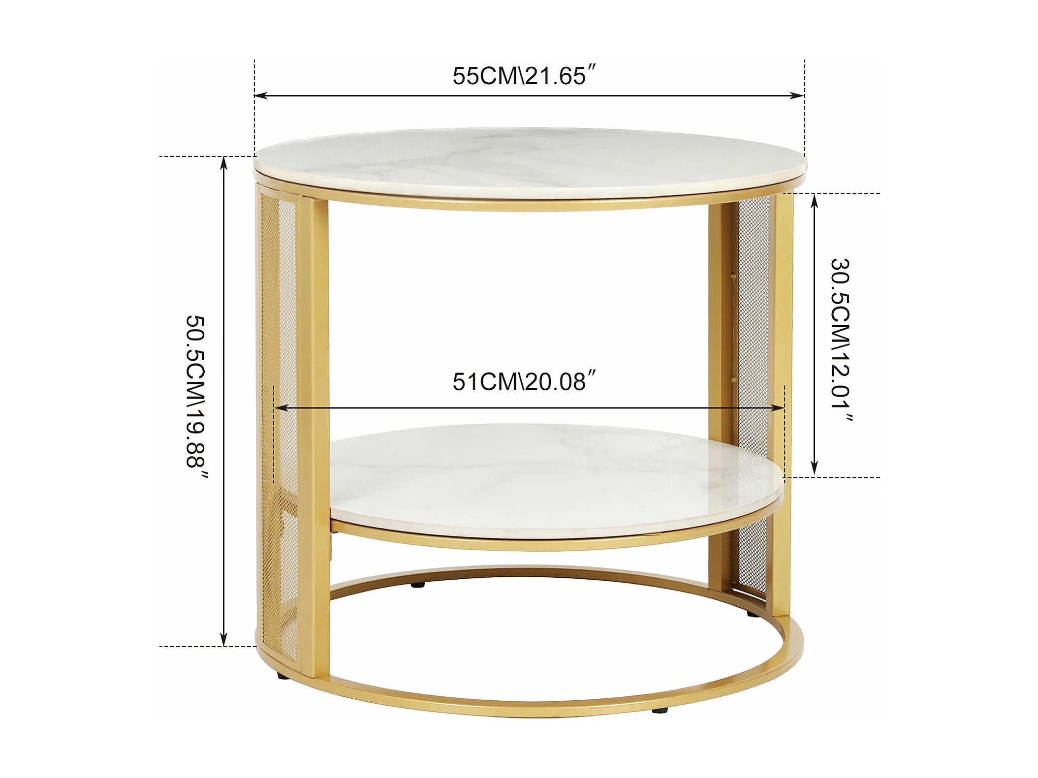 Table basse marbre rond design blanc guéridons de salon moderne et scandinave pour chambre 55x55x51cm