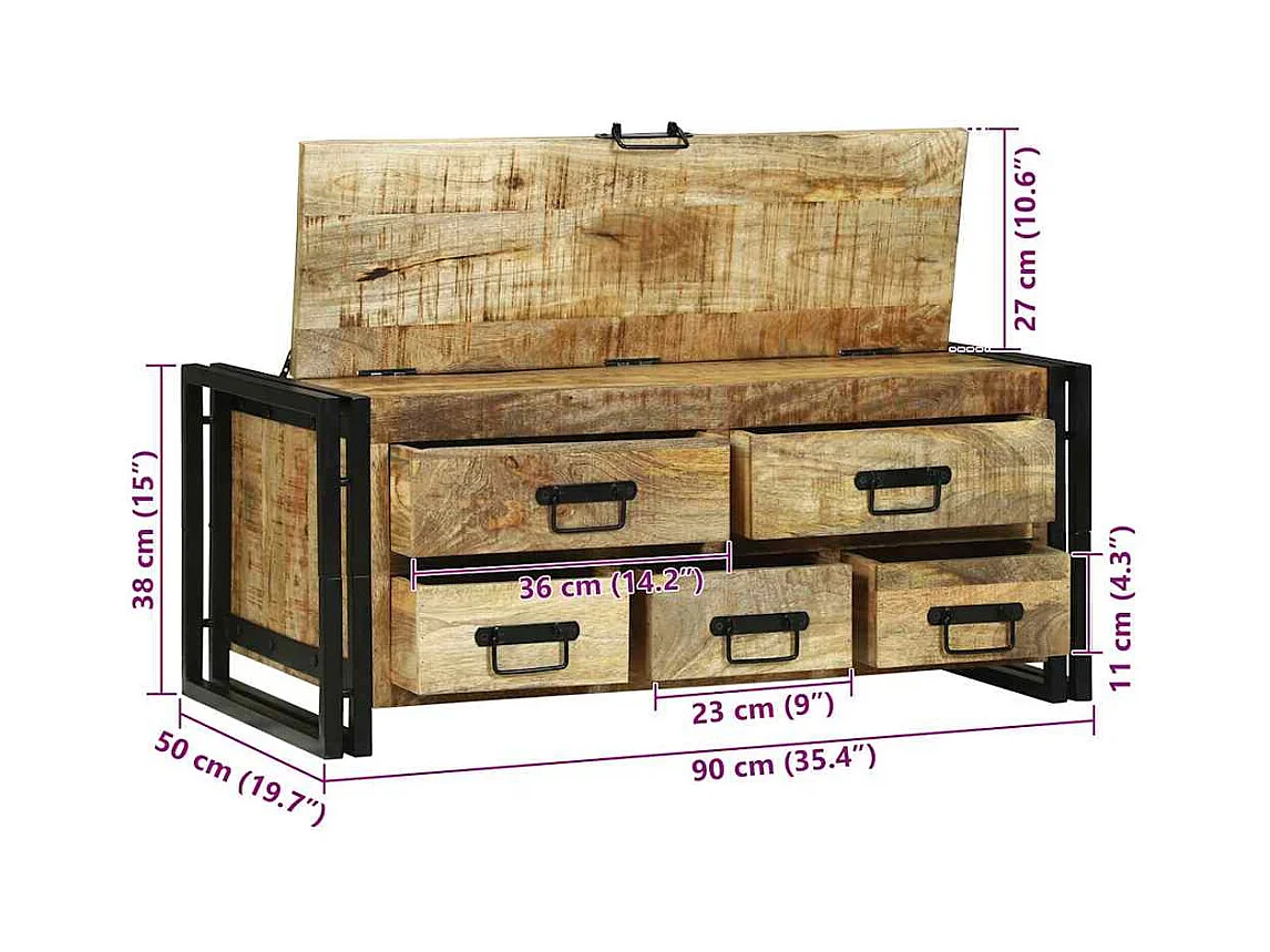 Table basse Marron 90 x 50 x 38 cm Bois de manguier brut massif
