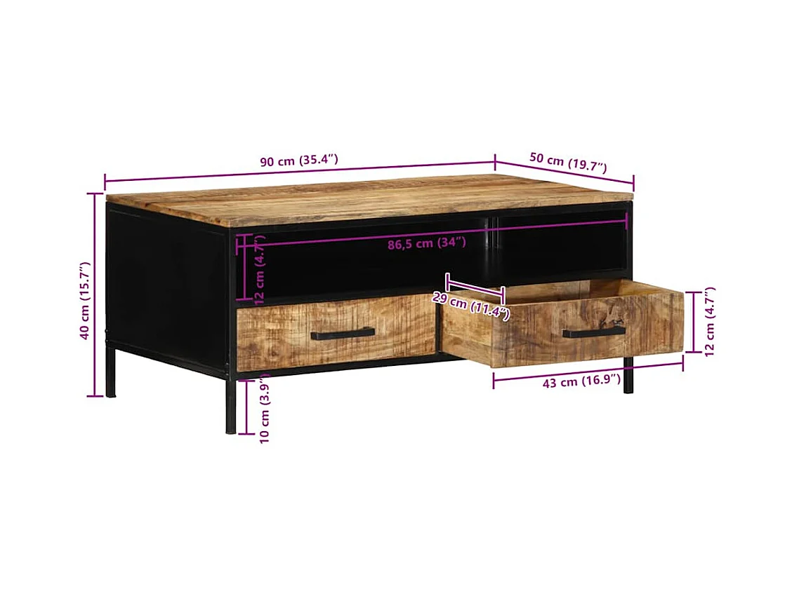 Table basse Marron 90 x 50 x 40 cm Bois de manguier massif