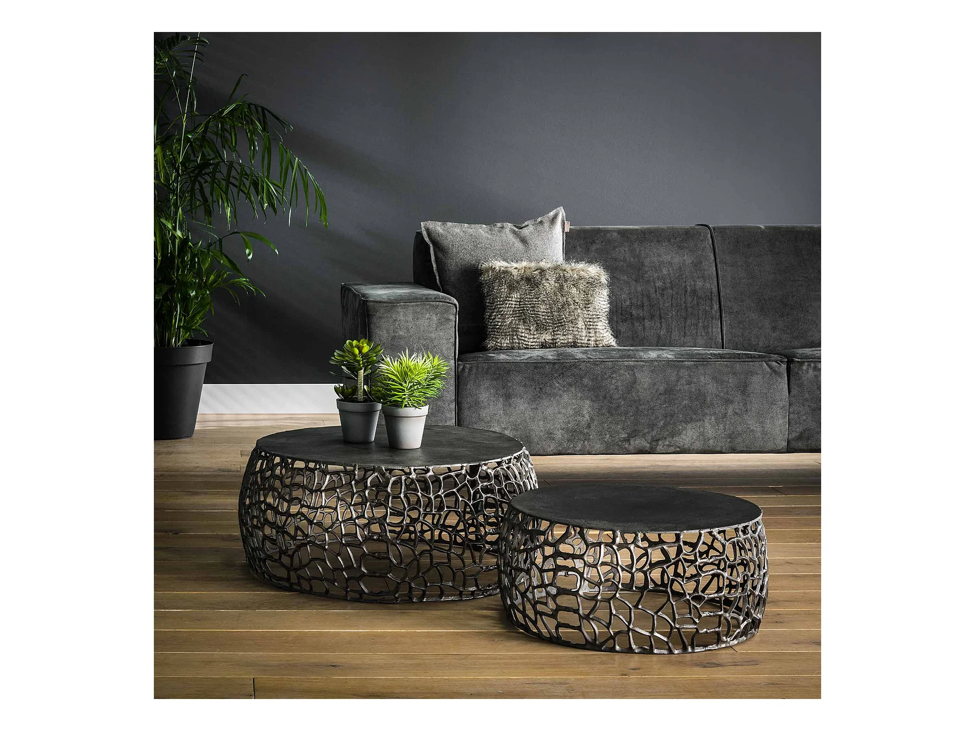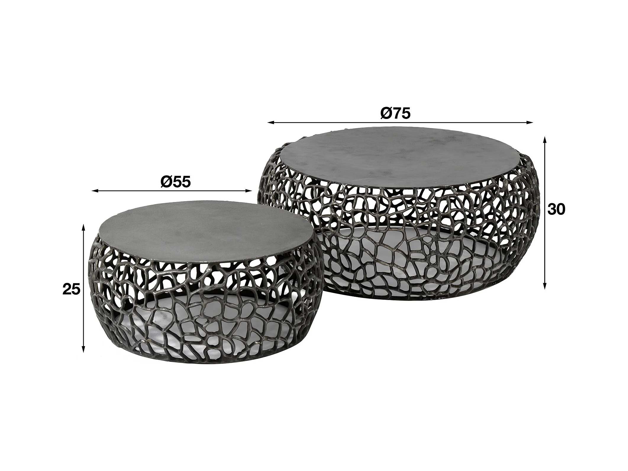 Table basse Maze - Métal Noir/Gris - Lot de 2 - 75x75x30