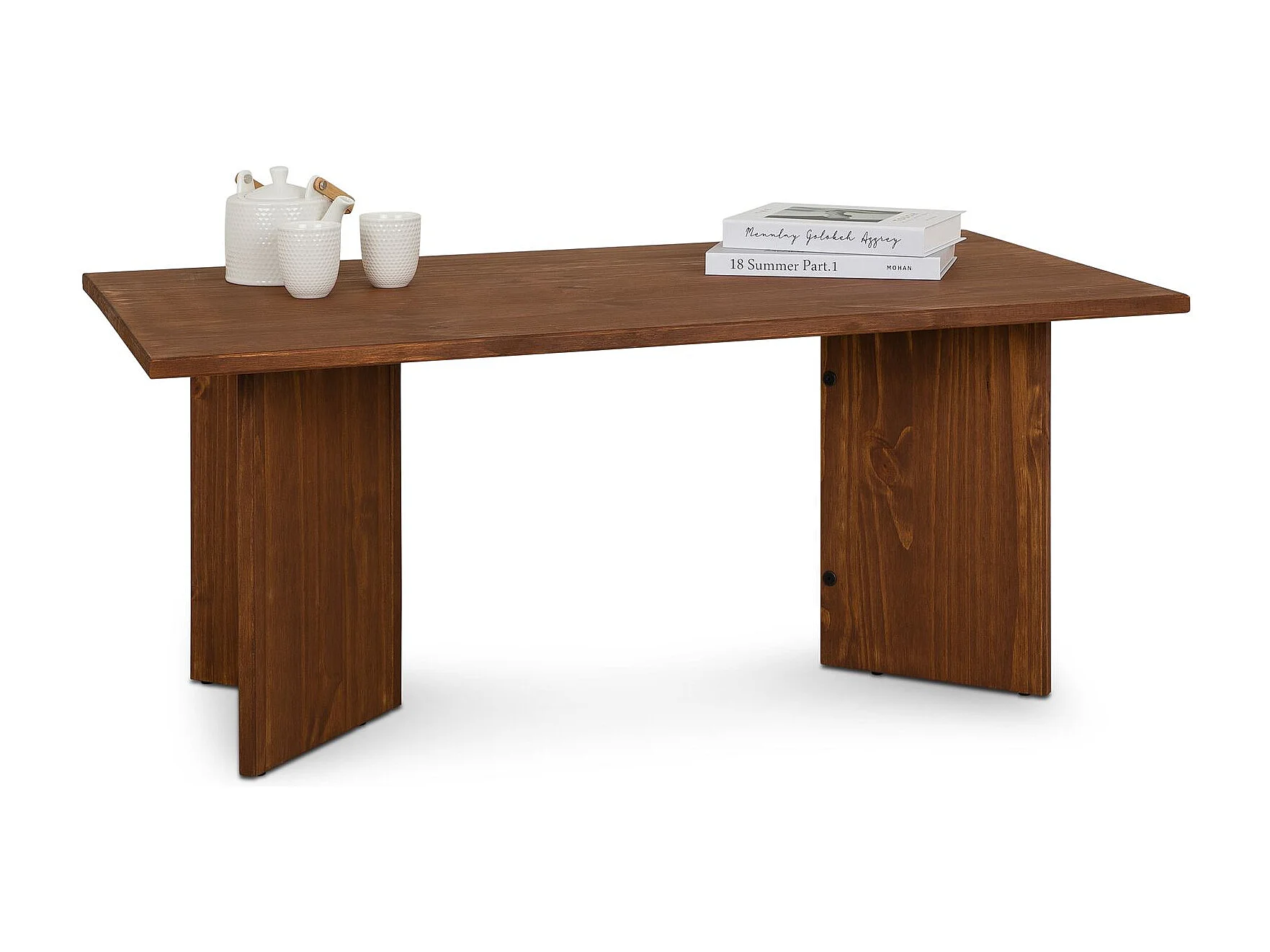 Table basse SALTO rectangulaire pour salon en bois massif brun foncé, 110x45 cm, élégante et minimaliste, pieds en bois