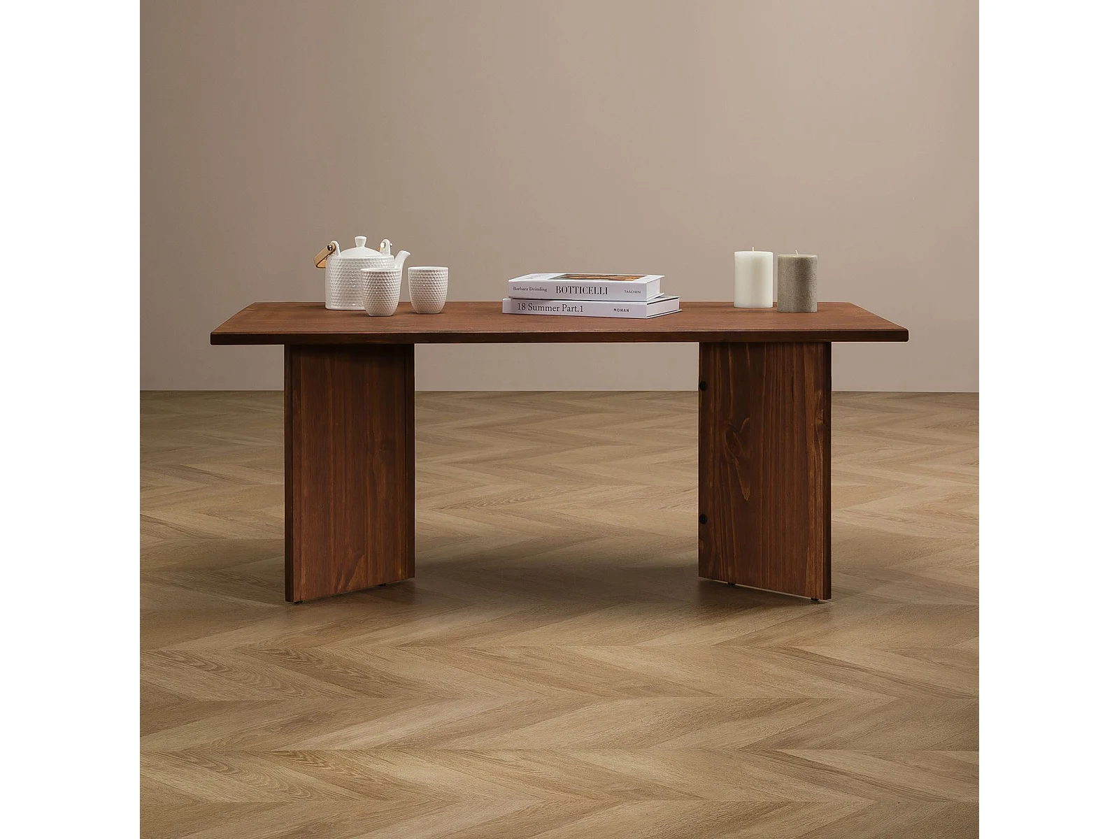 Table basse LUZERNA rectangulaire pour salon en bois massif brun foncé, 110 x 45 cm, design moderne minimaliste, pieds en bois