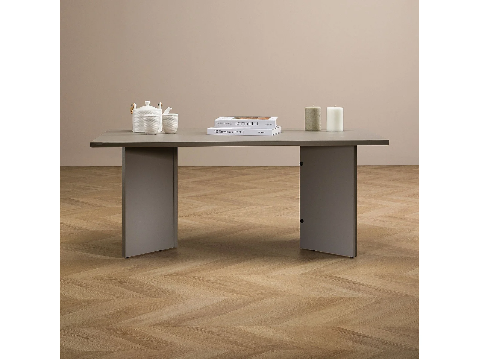 Table basse MESA pour salon en bois massif gris, Design rectangulaire moderne, Pieds angulaires, 110 x 45 x 60 cm
