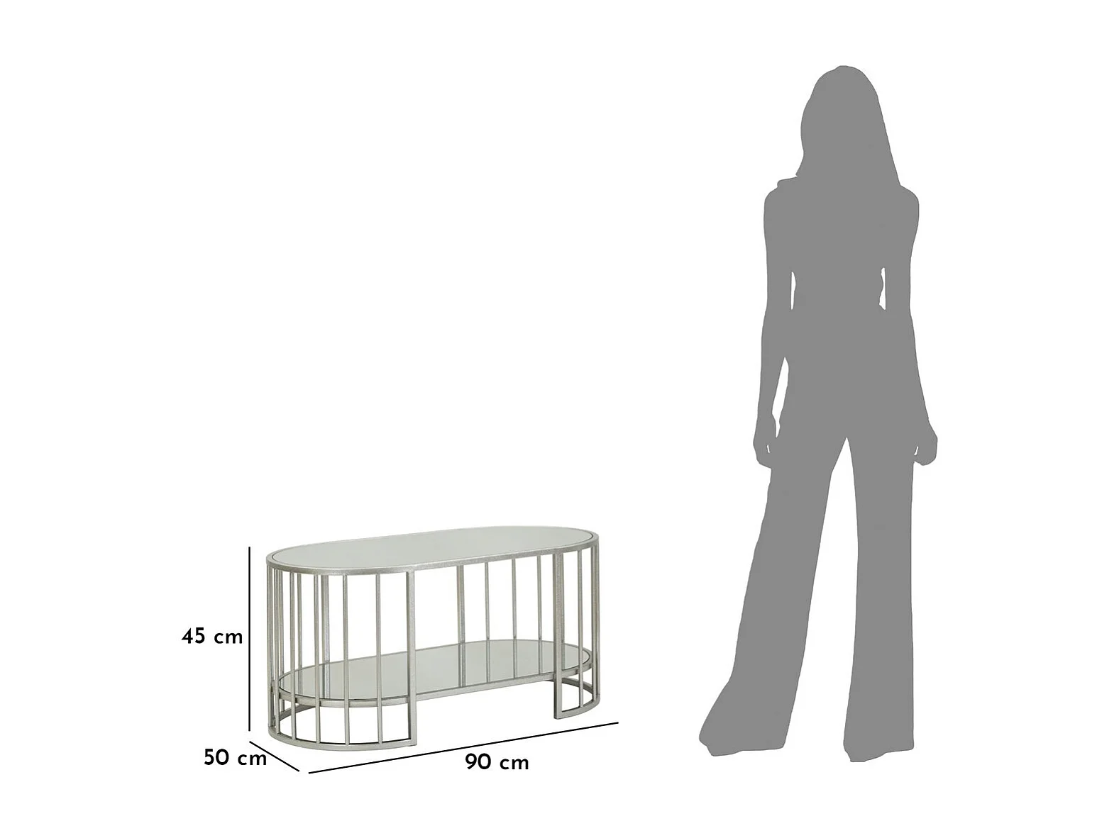 Table d'Appoint MF793, Argent, 90x50x45 cm, Seven Design