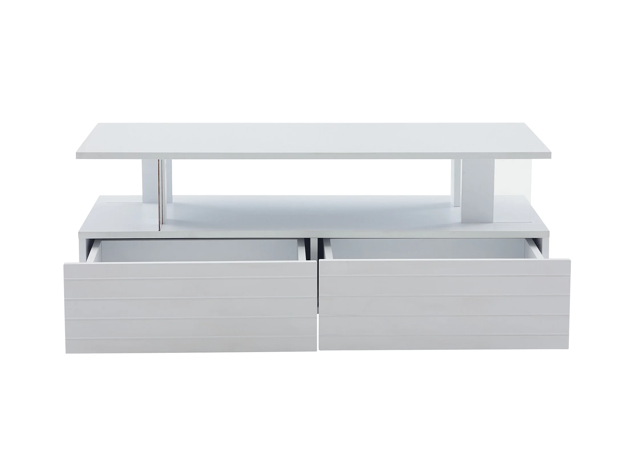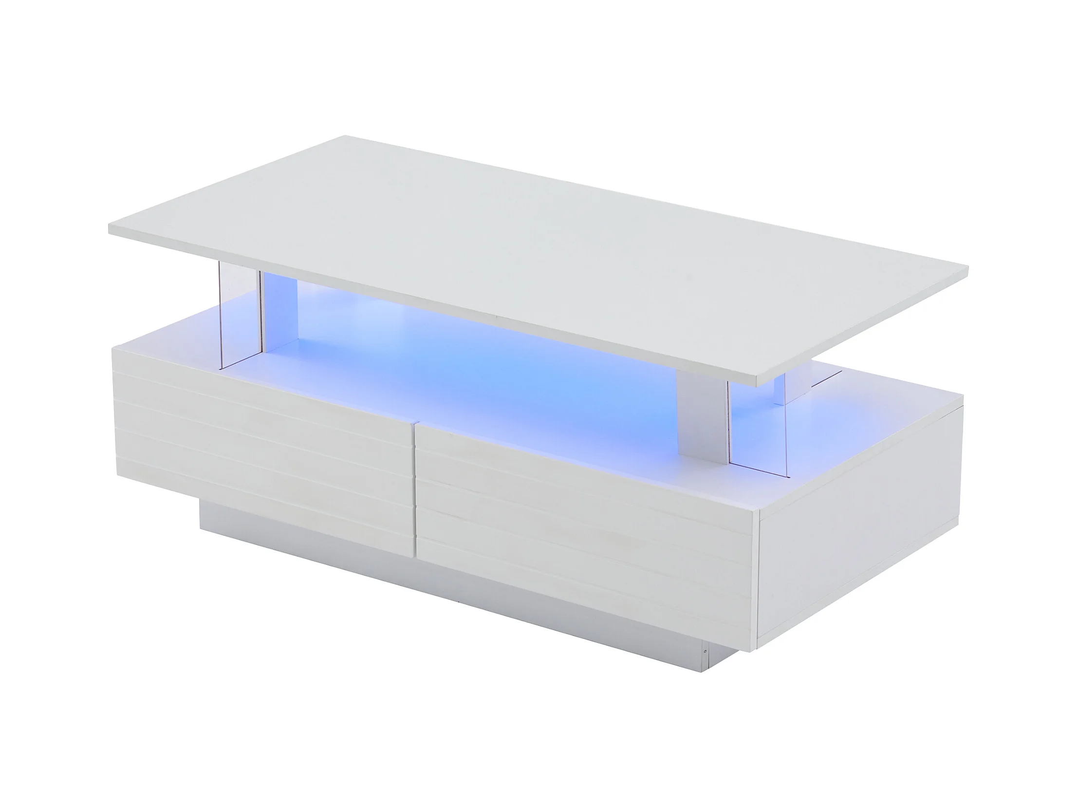 Table basse blanc avec 1 tiroir de rangement et étagères ouvertes, éclairage LED - pour salon