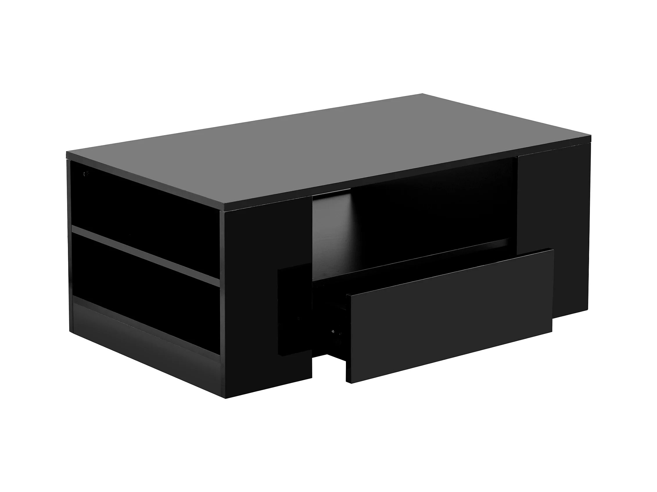 Table basse moderne rectangle noir laqué avec tiroir et LED