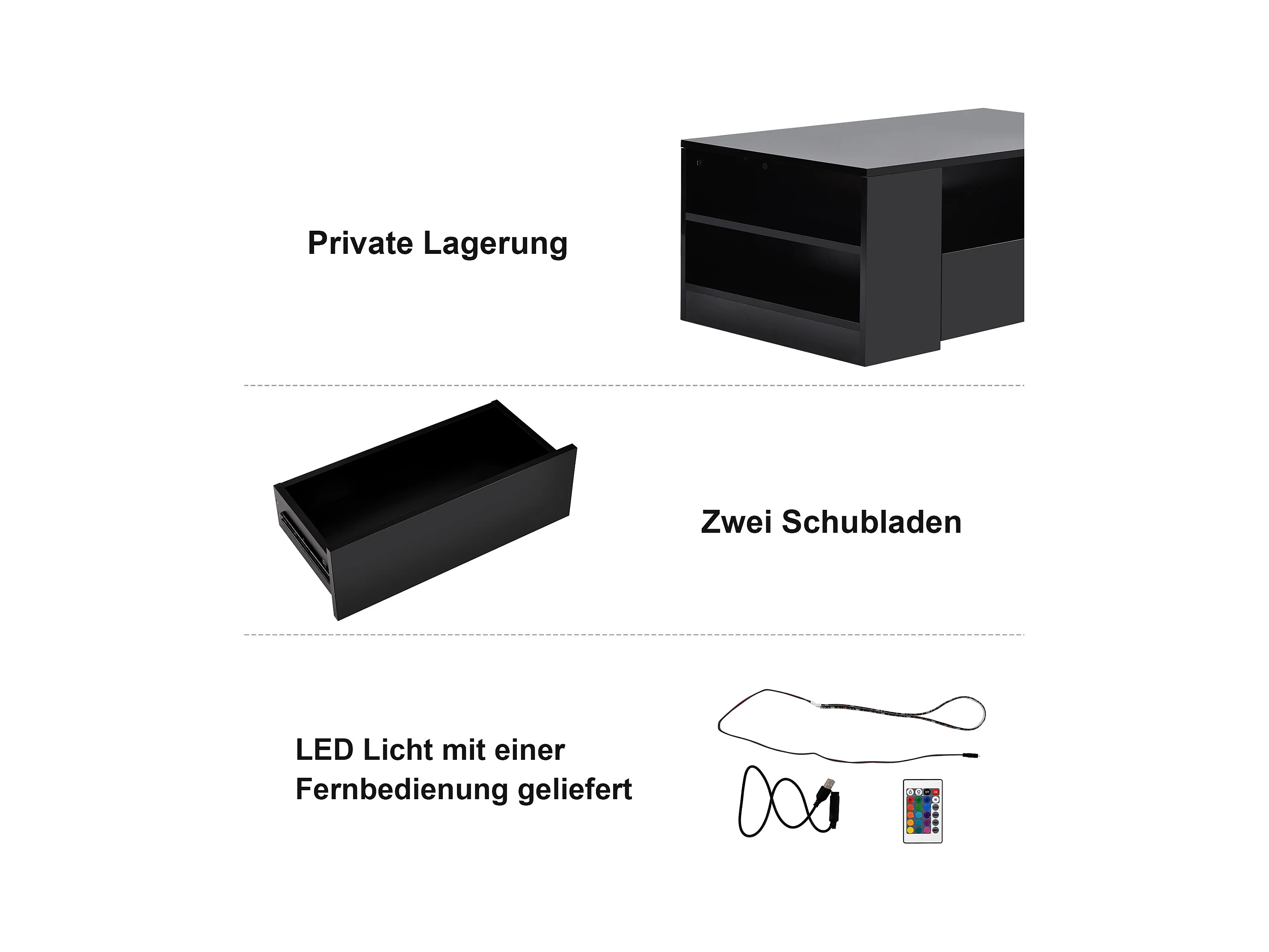 Table basse 100x50x35cm avec 2 tiroir et d'un compartiment semi-ouvert, LED, noir laqué
