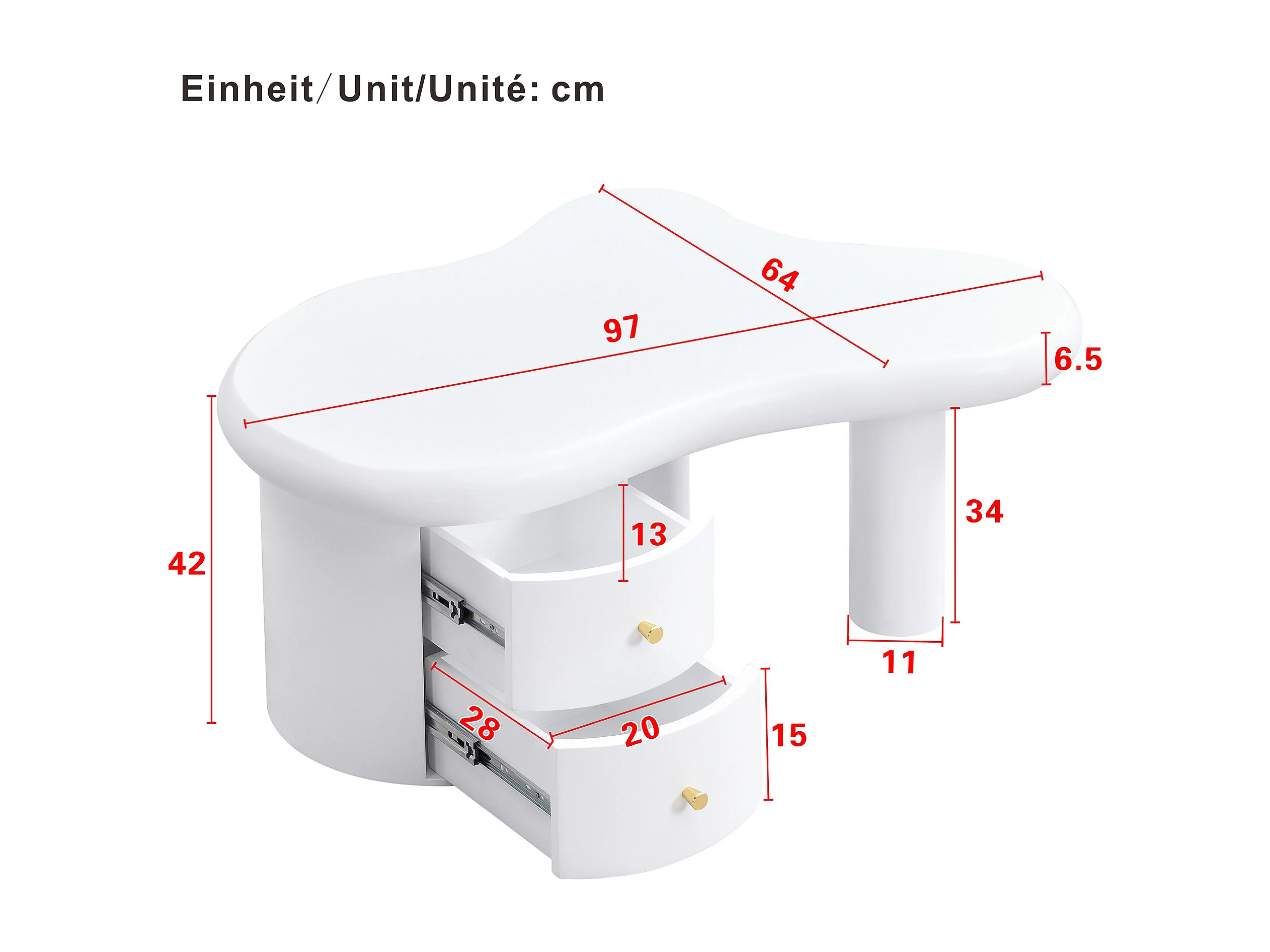 Table Basse Moderne Blanche au Design asymétrique avec 2 tiroirs de Rangement