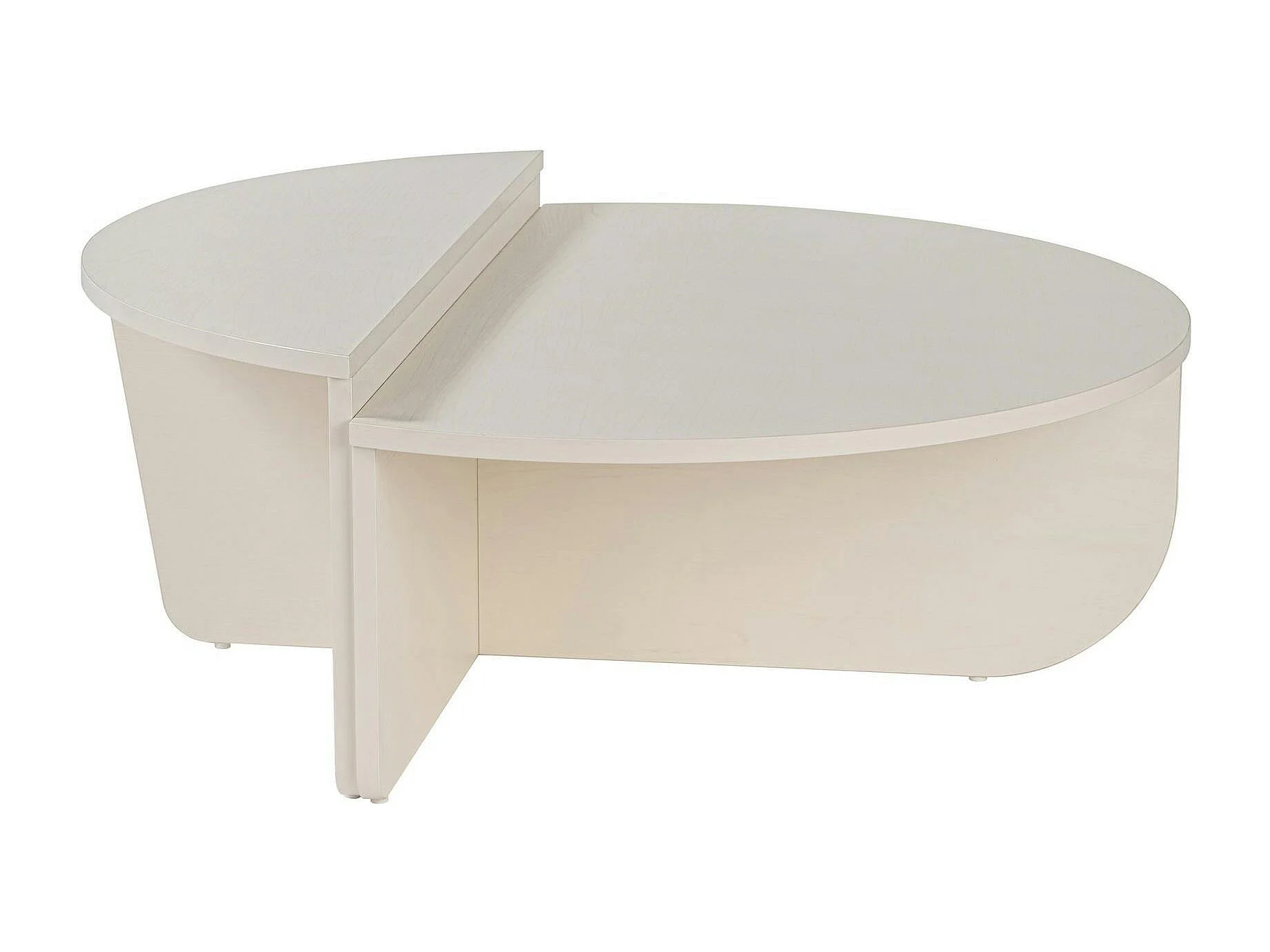 Table basse ronde blanche effet bois - design puzzle MARFA