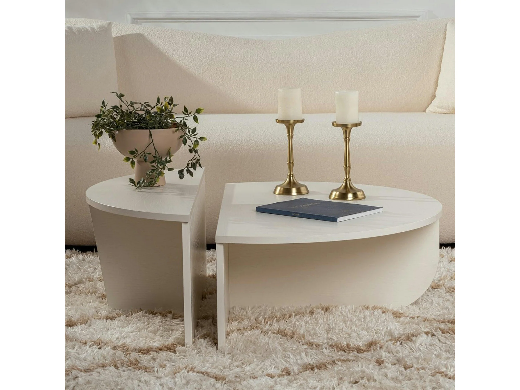 Lot de 2 tables basses rondes emboîtables en Blanc pour salon