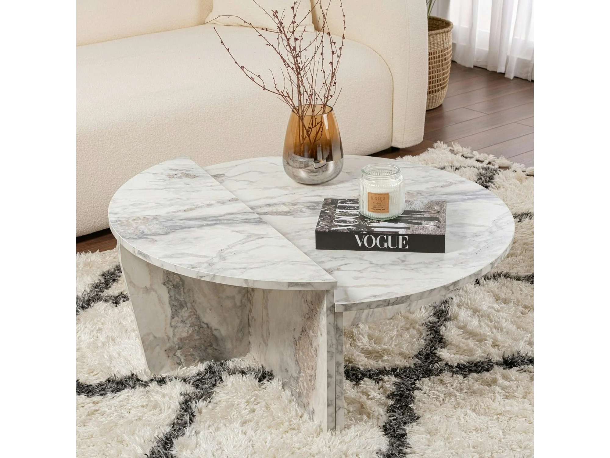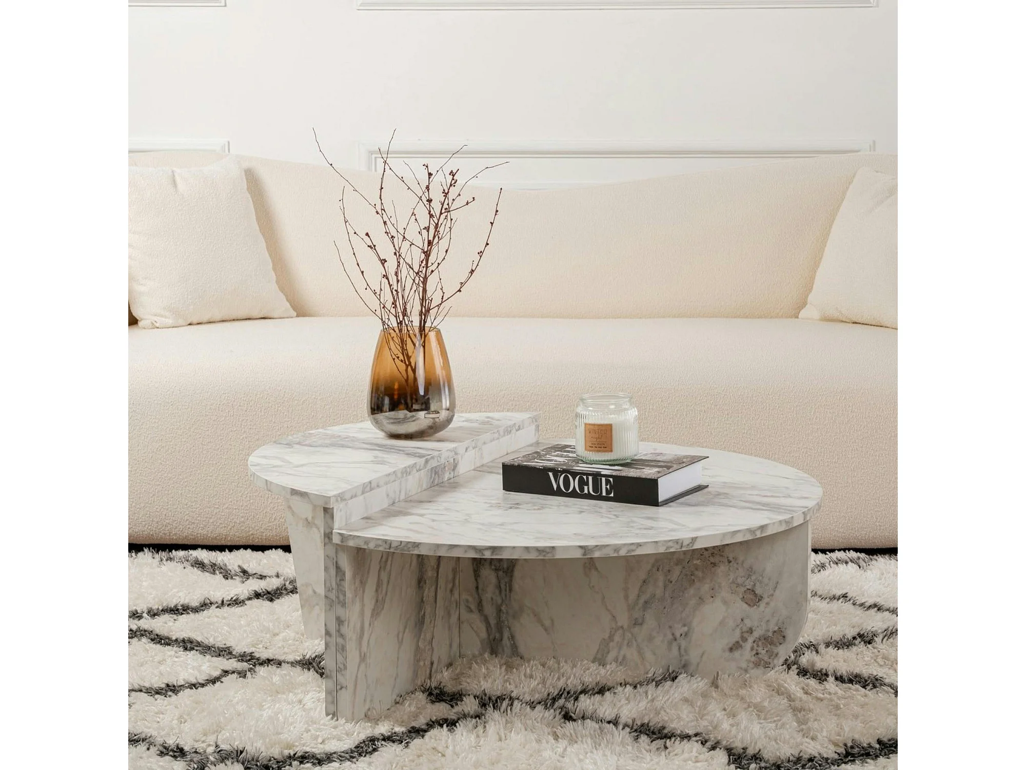 Table basse moderne effet marbre blanc - 2 hauteurs MARFA