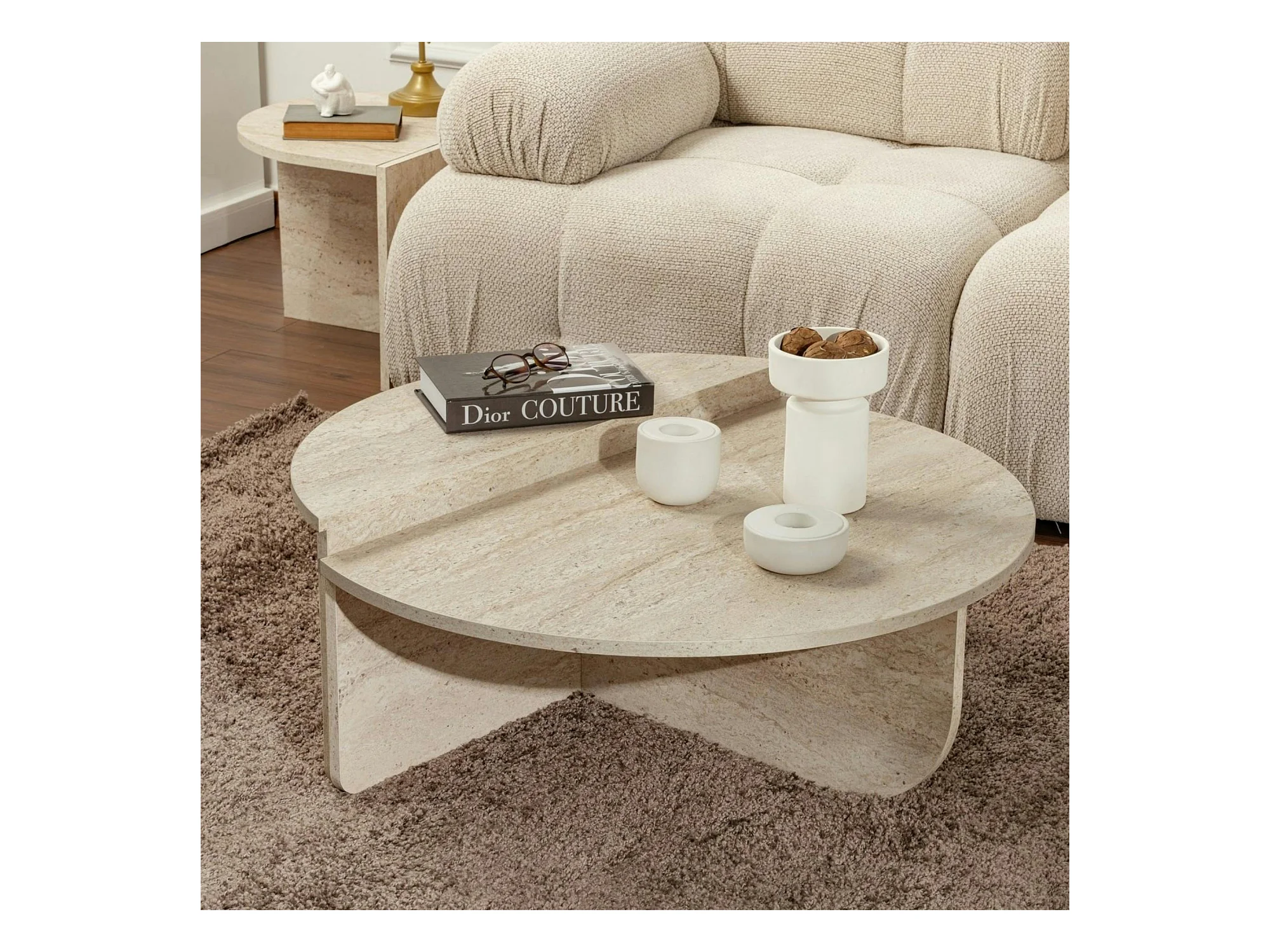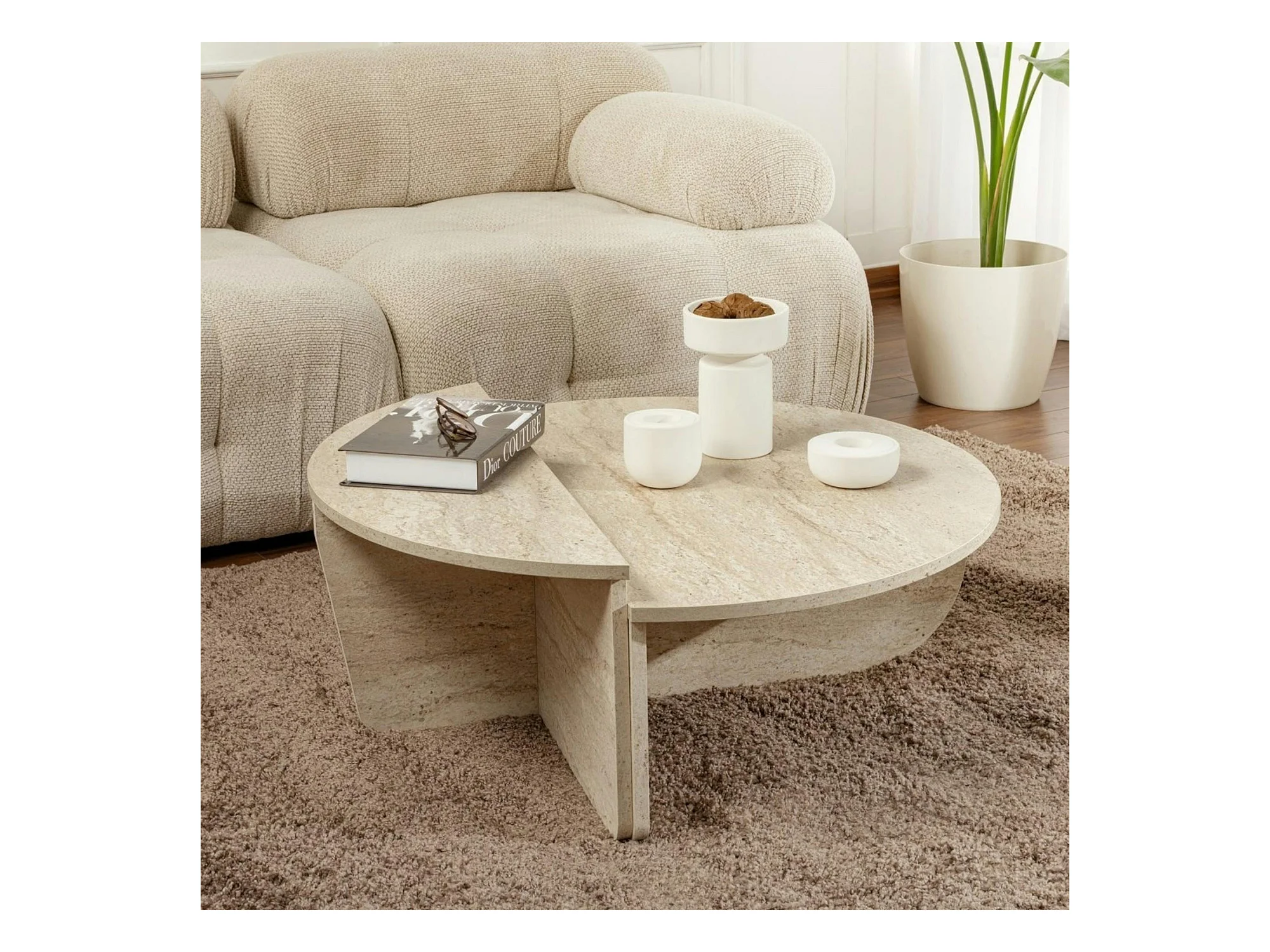 Table basse moderne effet travertin - 2 hauteurs MARFA