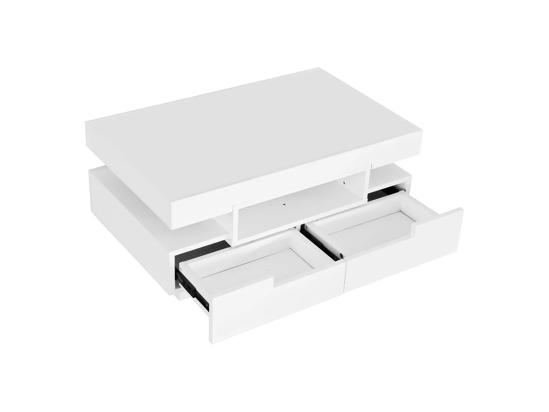 Table basse brillante - 80 x 50 x 35.5 cm - plateau extensible + 1 tiroir + Leds - MDF - blanc