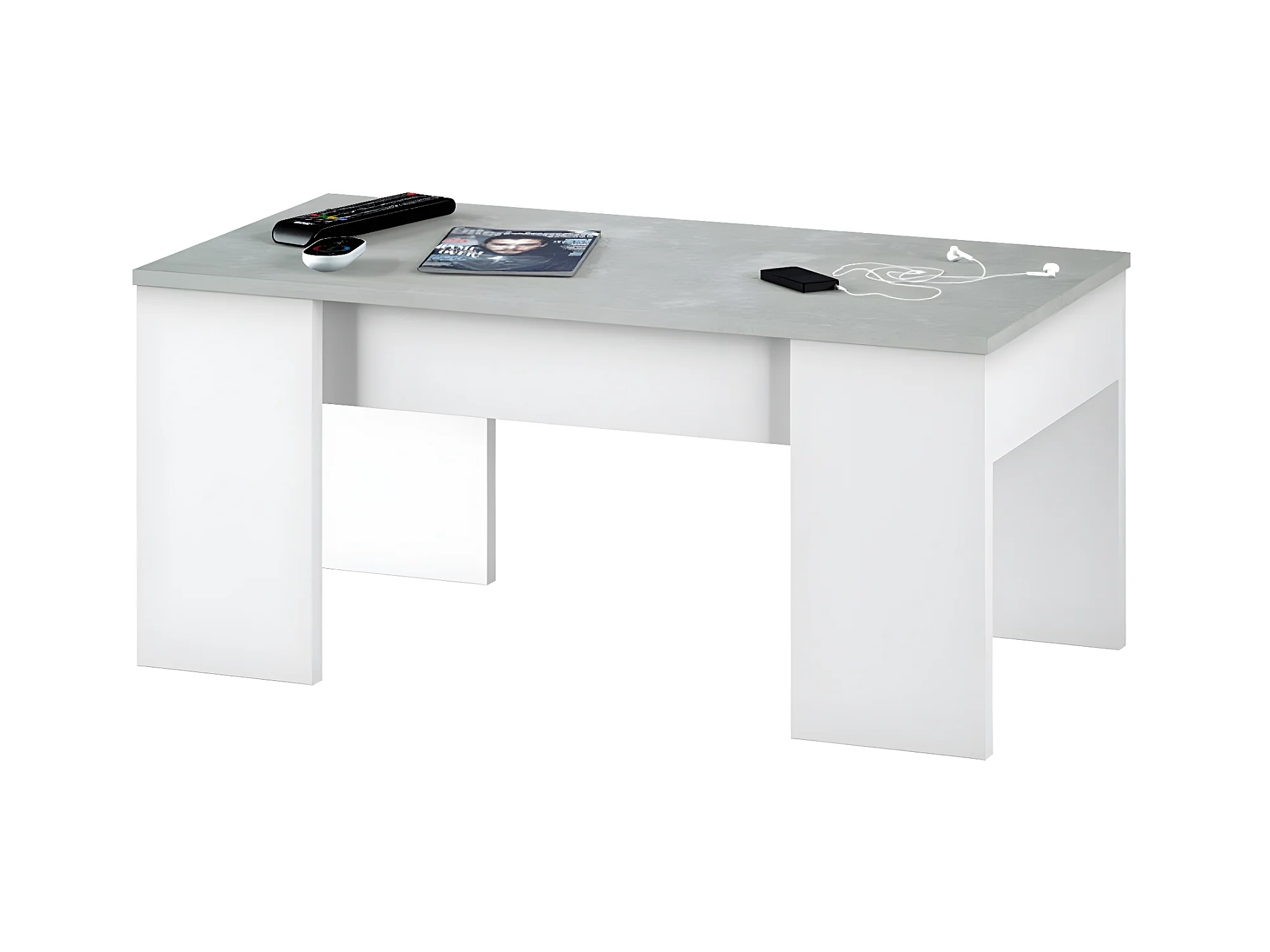Table basse modulable coloris Blanc Artik / Ciment en mélamine avec plateau - Dim : 45 x 100 x 50 cm